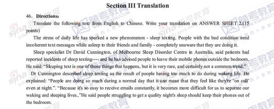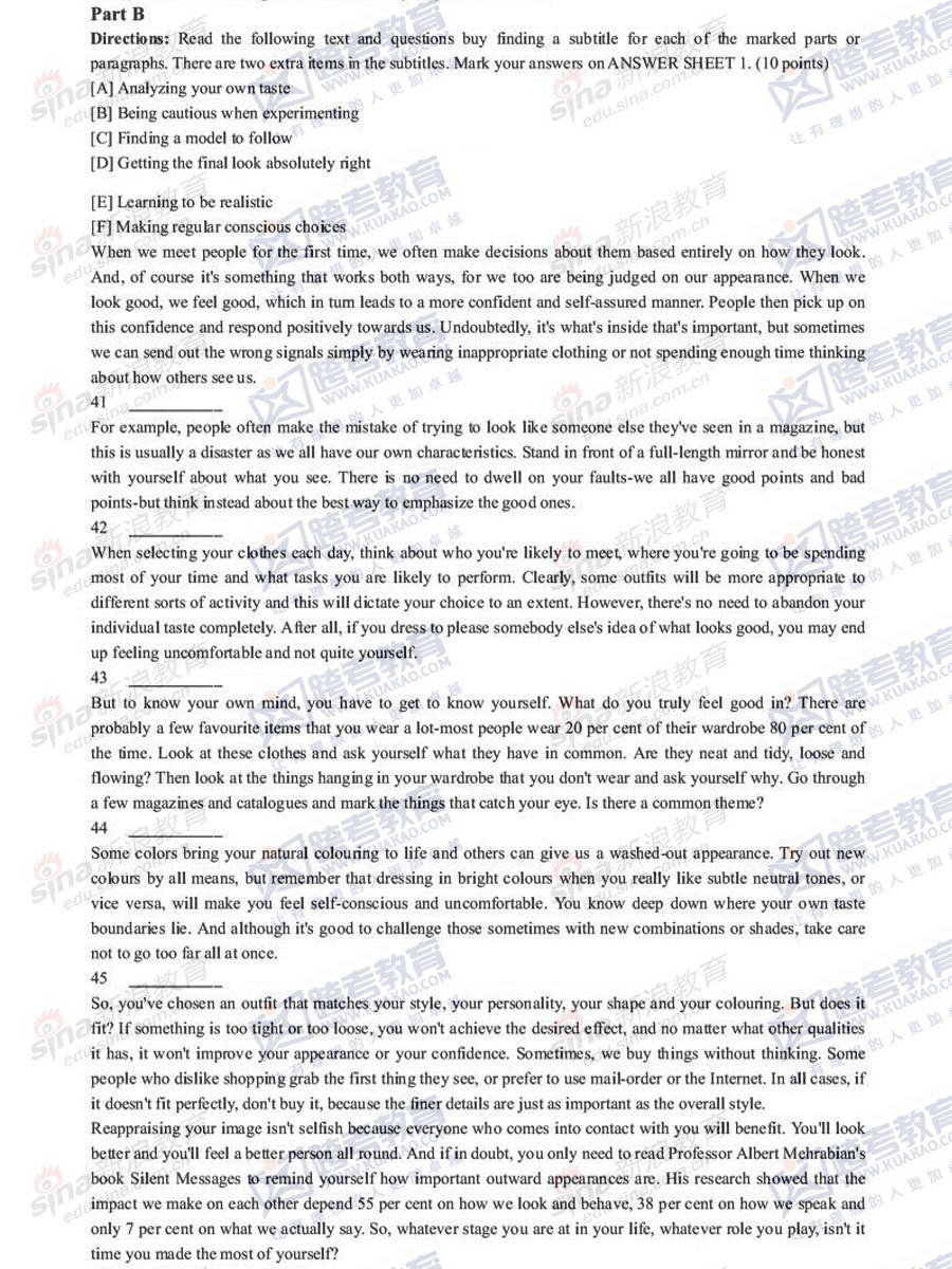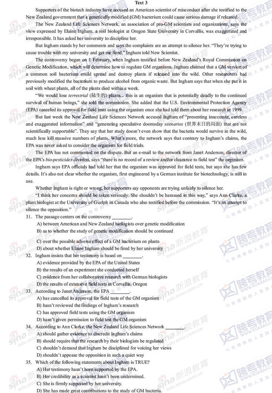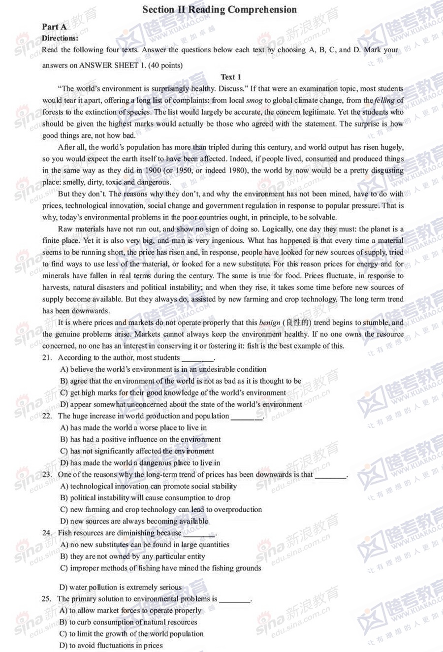 跨考教育2014年考研《英语二》模拟试题及参考答案(三)