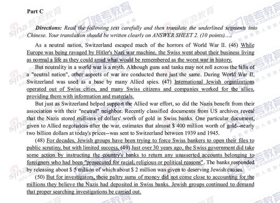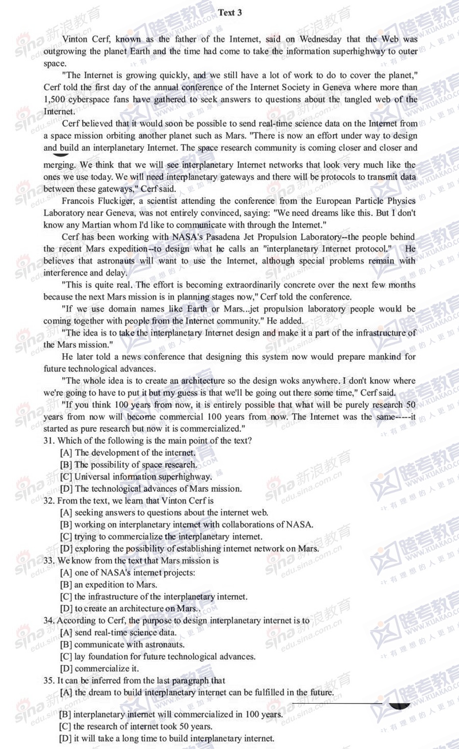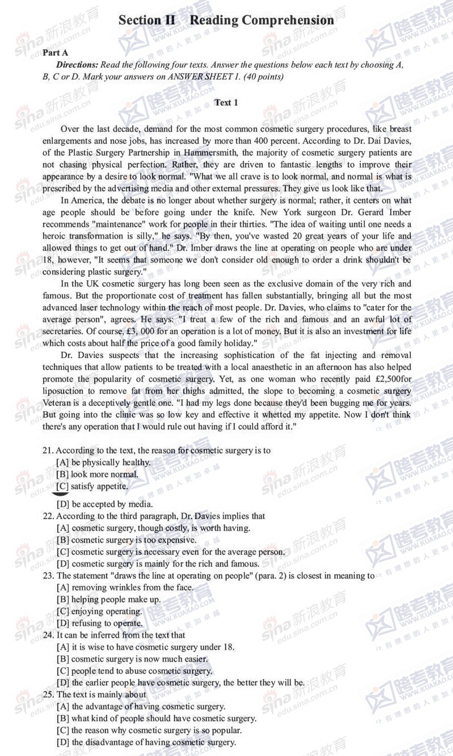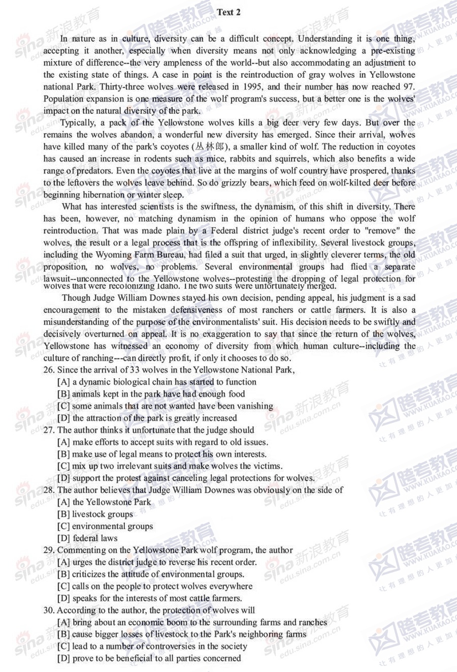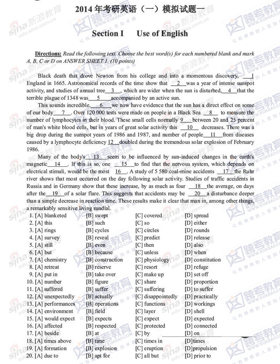 跨考教育2014年考研《英语一》模拟试题及参考答案(一)