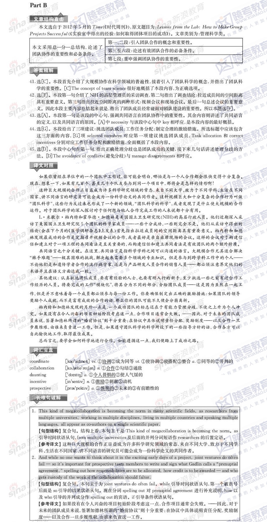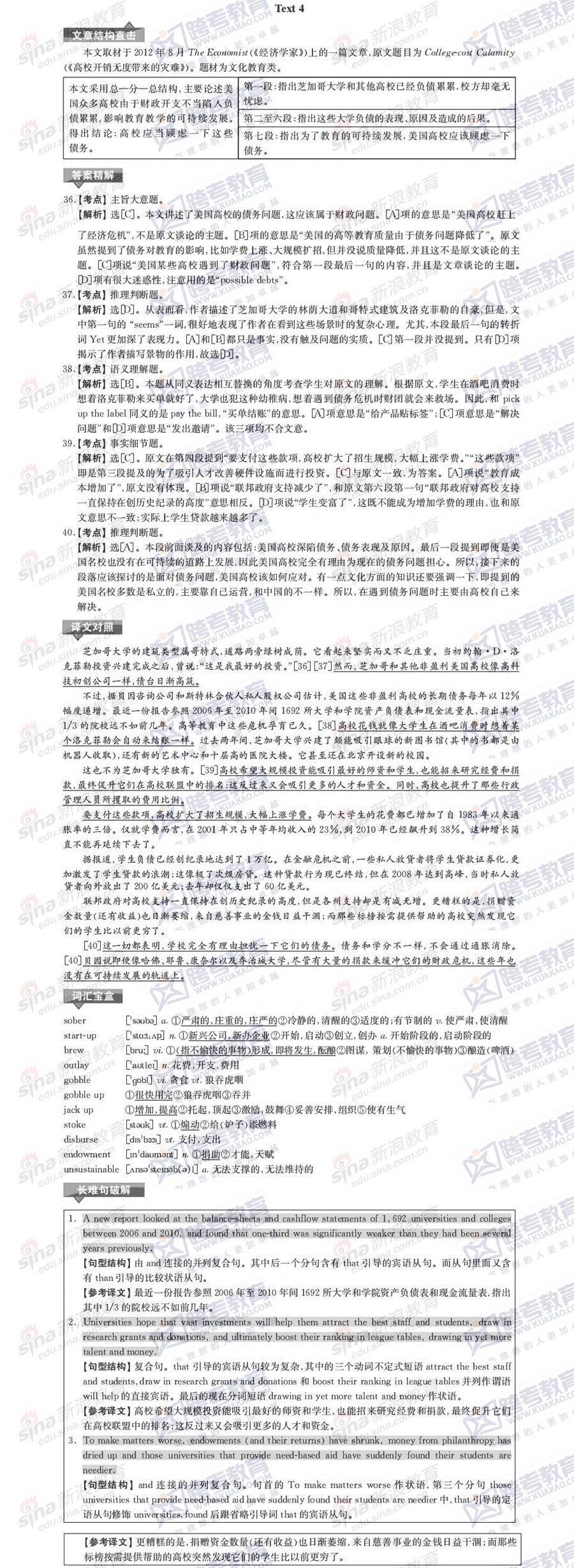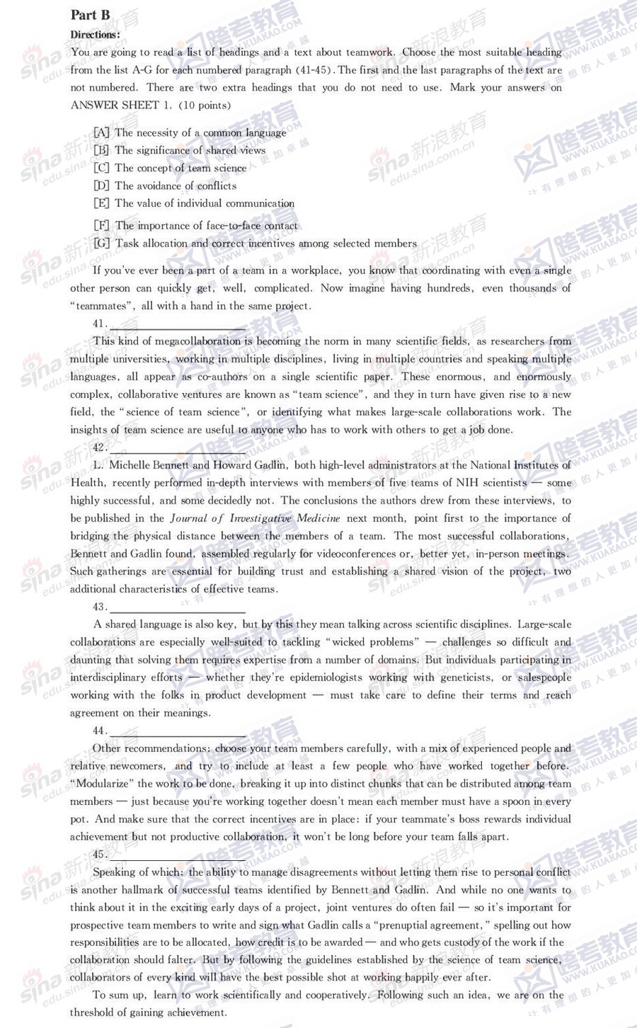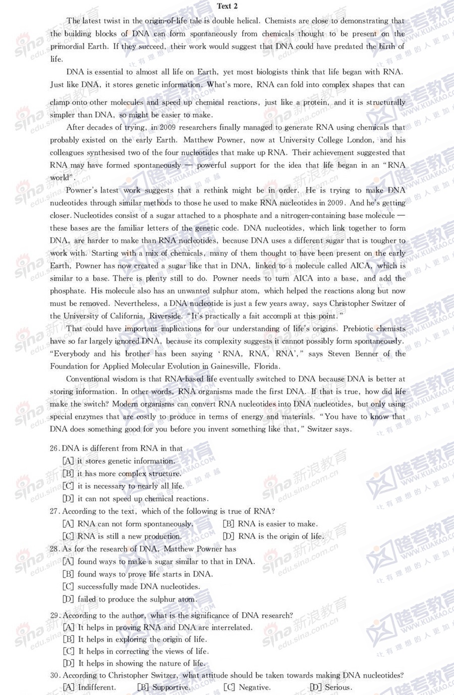 跨考教育2014年考研《英语一》模拟试题及参考答案(二)