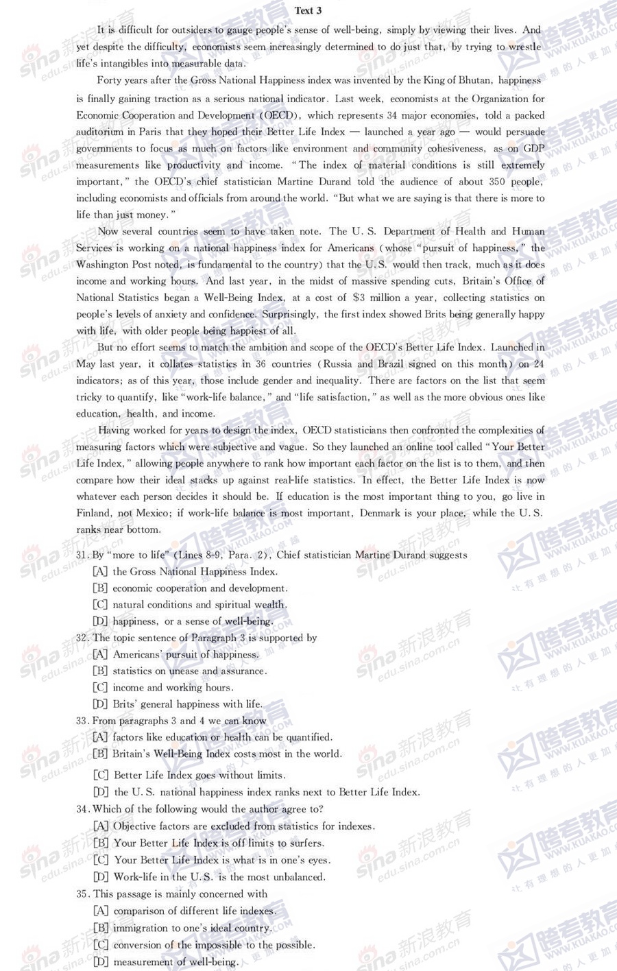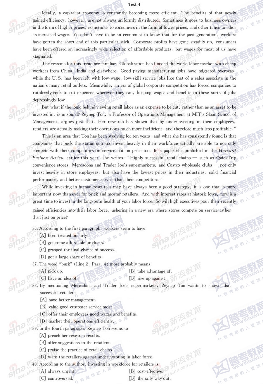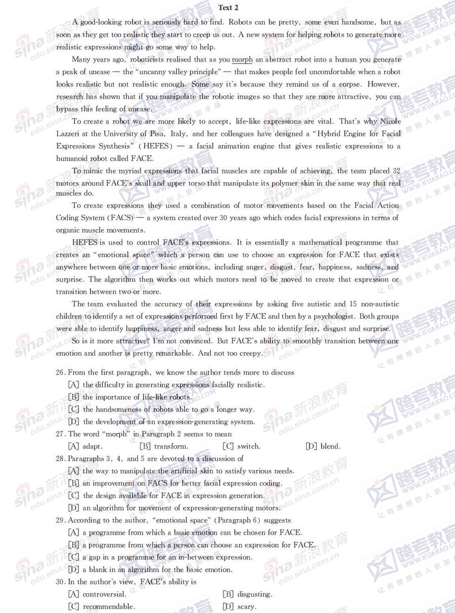 跨考教育2014年考研《英语一》模拟试题及参考答案(三)