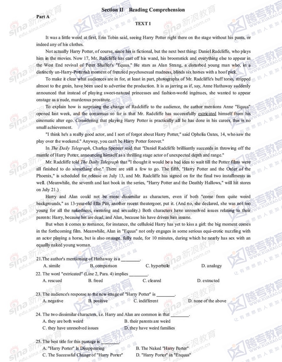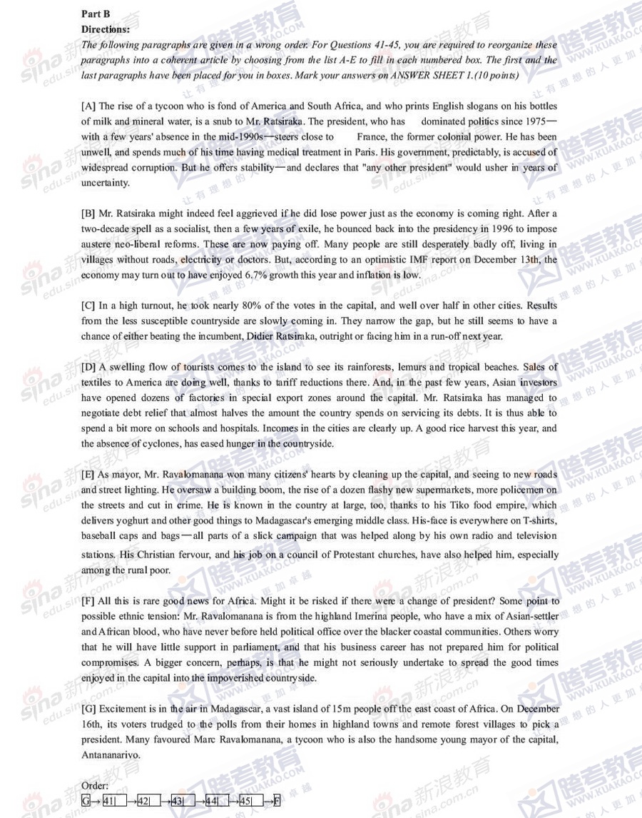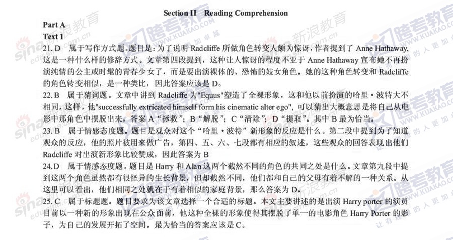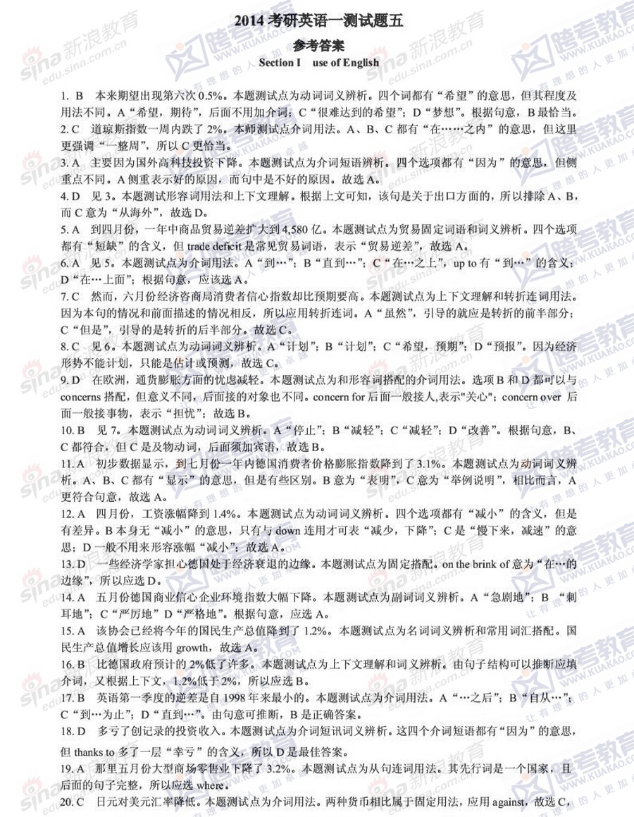 跨考教育2014年考研《英语一》模拟试题及参考答案(五)