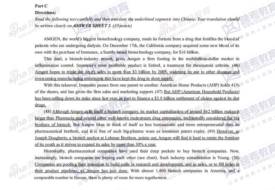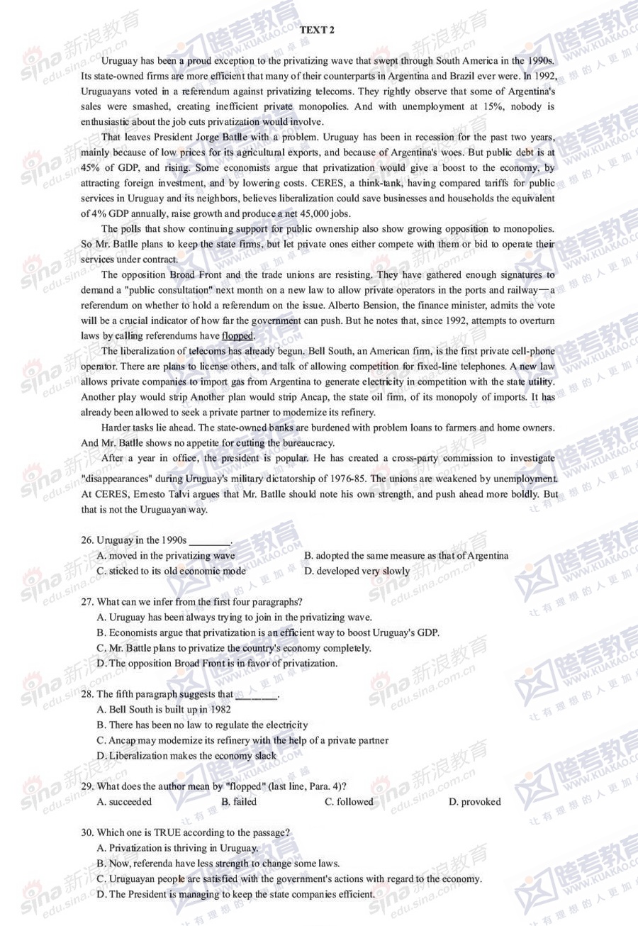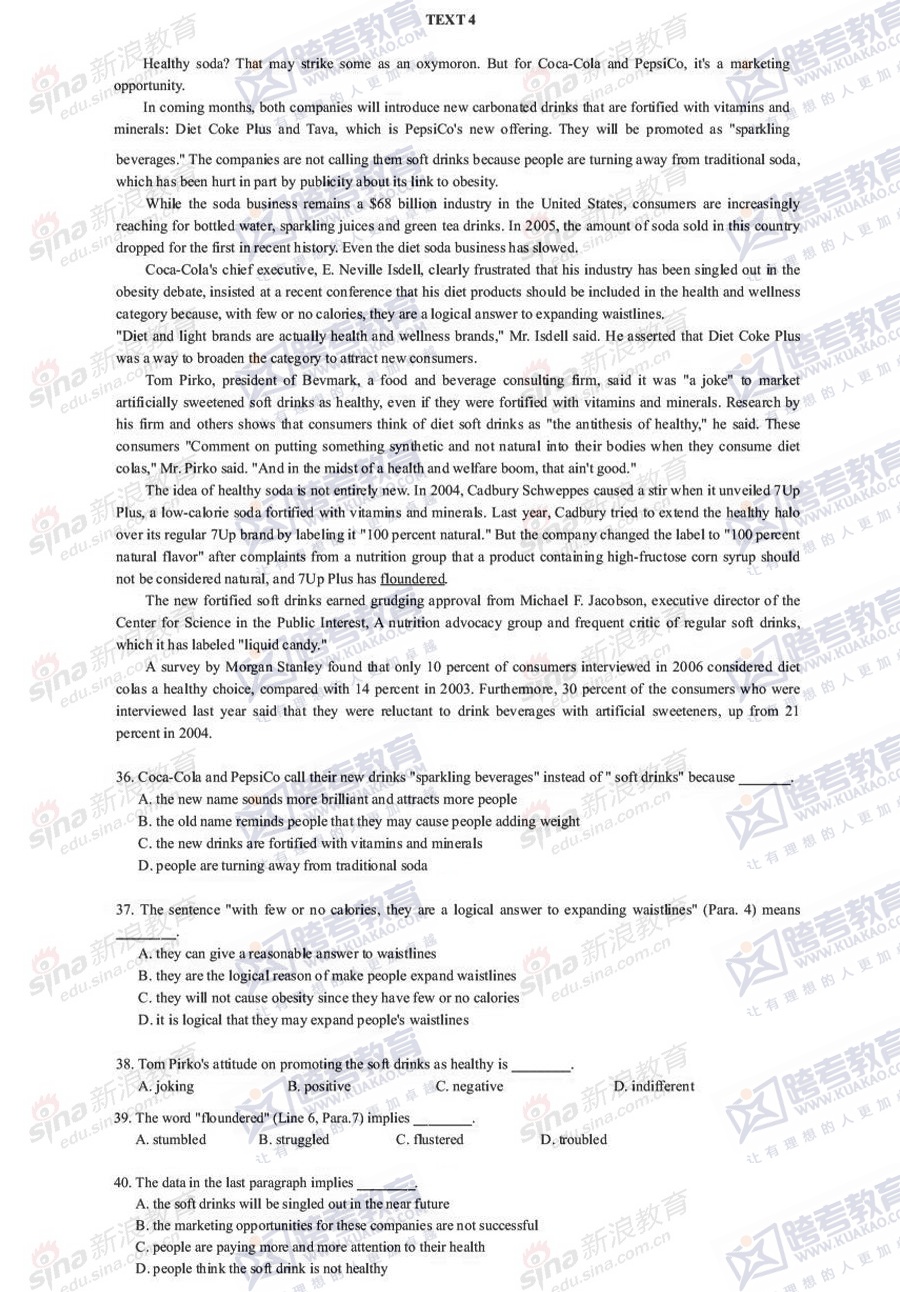 跨考教育2014年考研《英语一》模拟试题及参考答案(五)