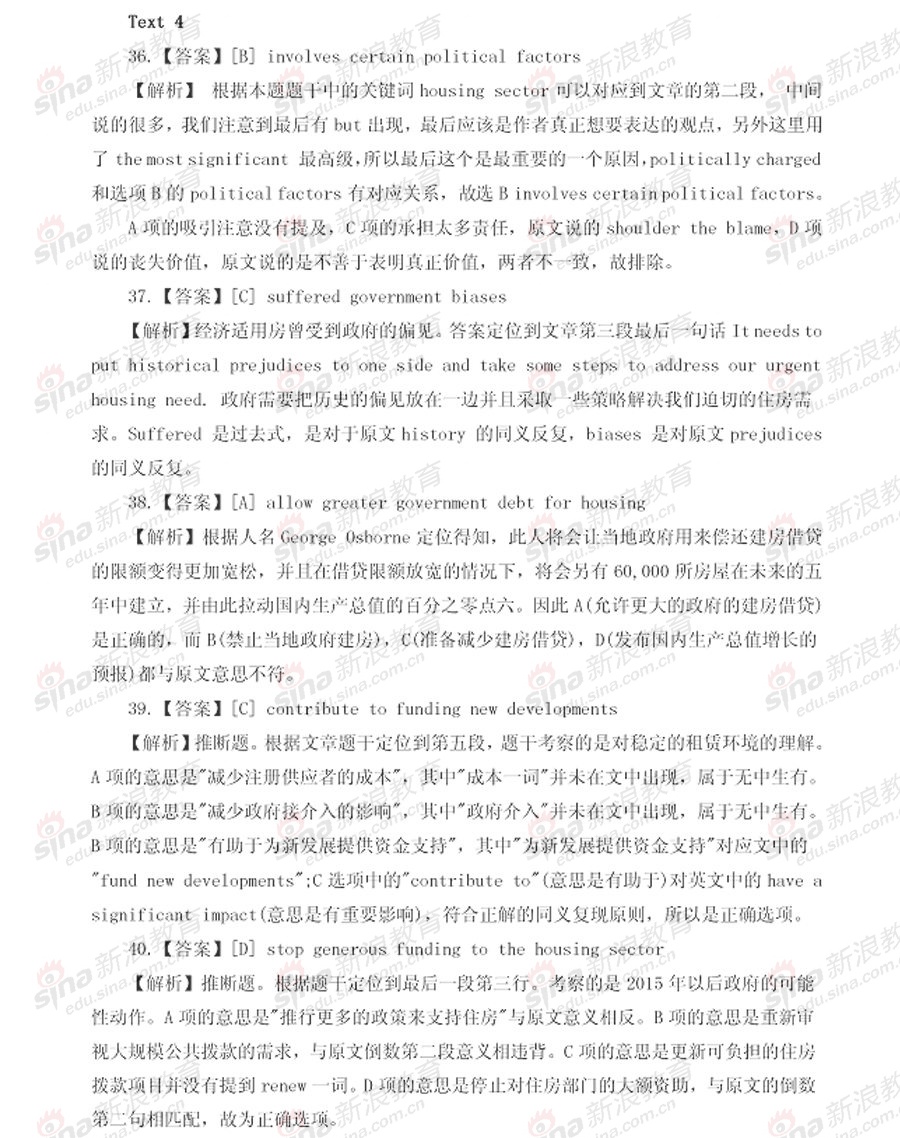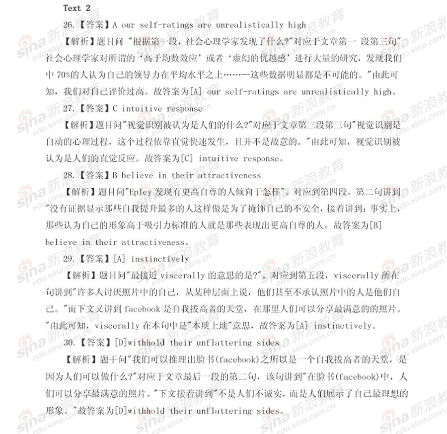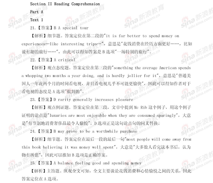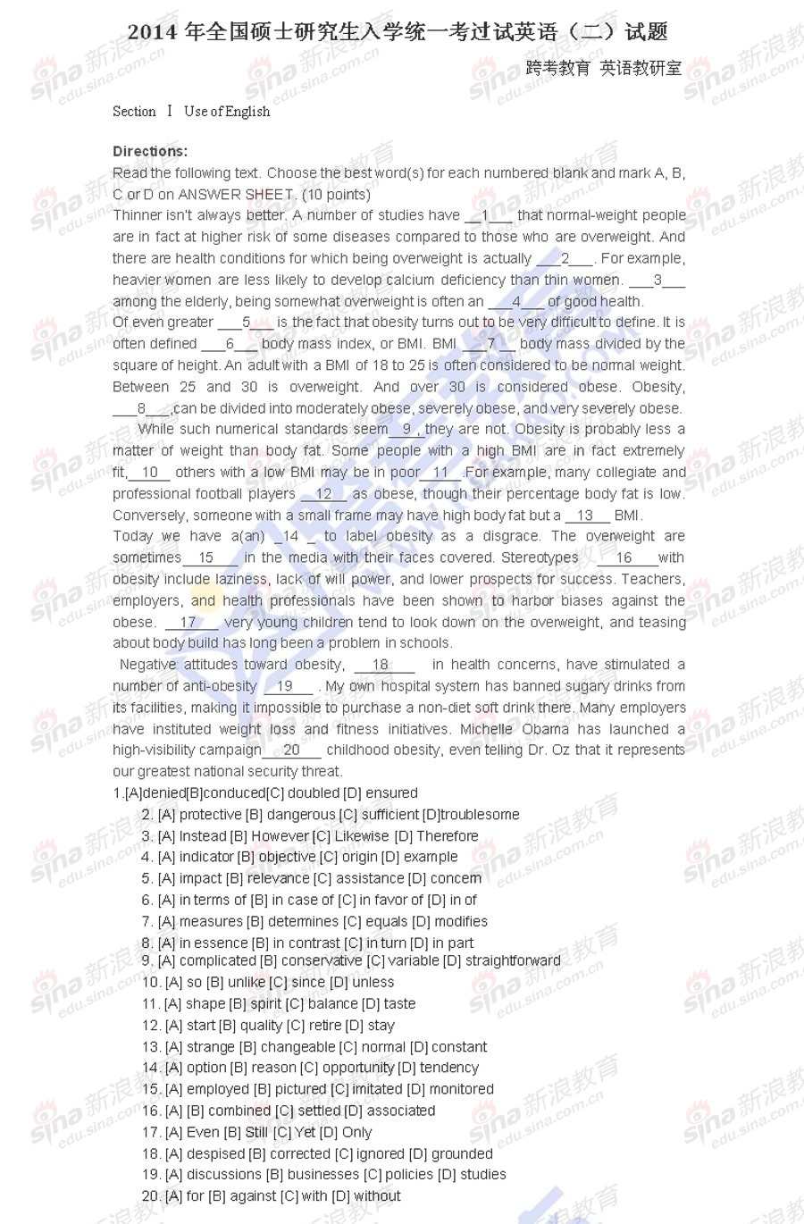 英语指导 新浪教育 免费考研网 2014-01-182012年全国硕士研究生入学考试英语二试题解析 跨考英语教研室—杨凤芝 Section Ⅰ Use of English 1.【答案】B从空后的句子“他们解放的人们”可以看出,空前的句子表示的应该是参加了第二次大战的男人和女人。只有serve有“服兵役”的意思,所以选B。其他都不符合题意。 ...
