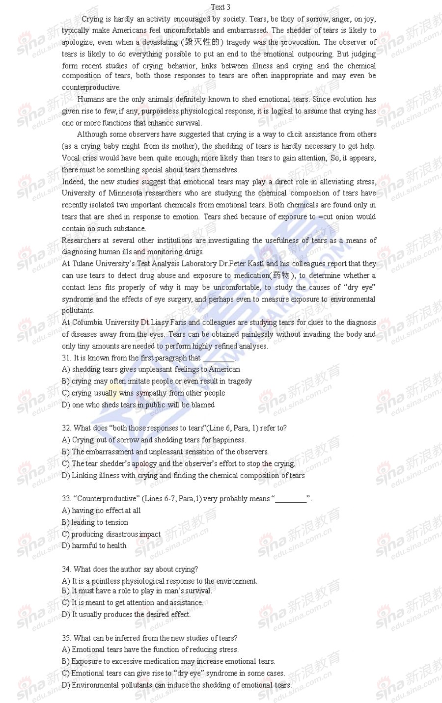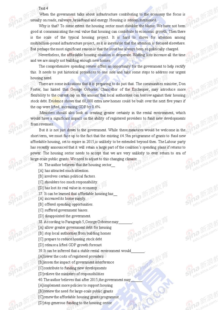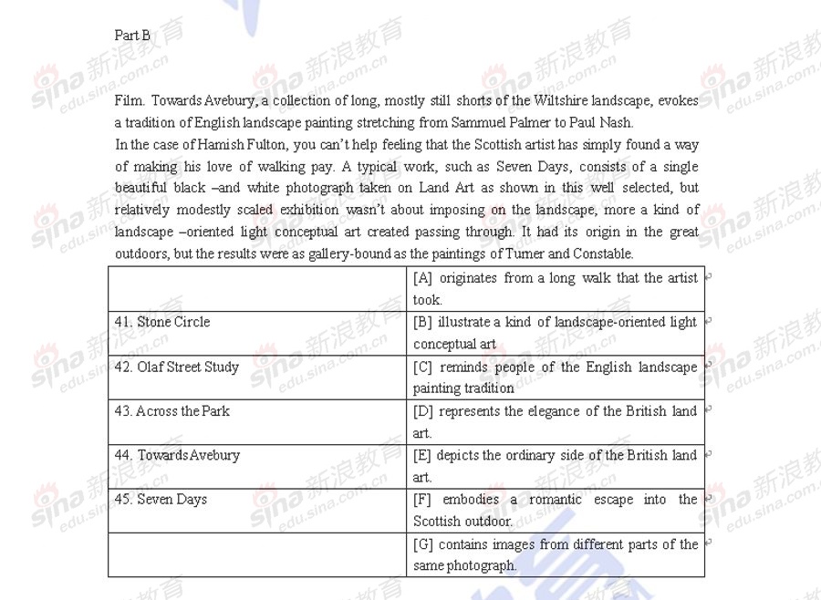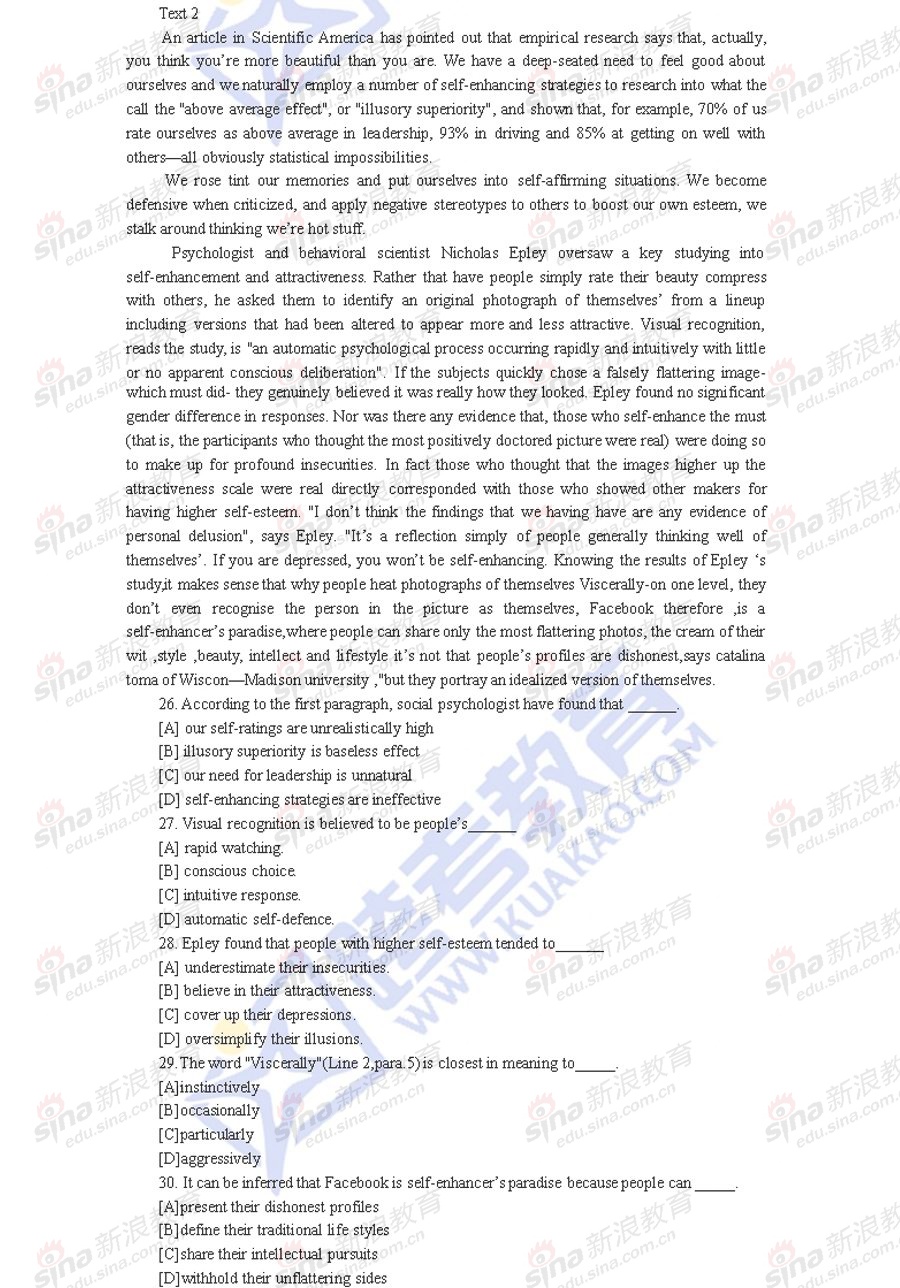英语指导 新浪教育 免费考研网 2014-01-182012年全国硕士研究生入学考试英语二试题解析 跨考英语教研室—杨凤芝 Section Ⅰ Use of English 1.【答案】B从空后的句子“他们解放的人们”可以看出,空前的句子表示的应该是参加了第二次大战的男人和女人。只有serve有“服兵役”的意思,所以选B。其他都不符合题意。 ...