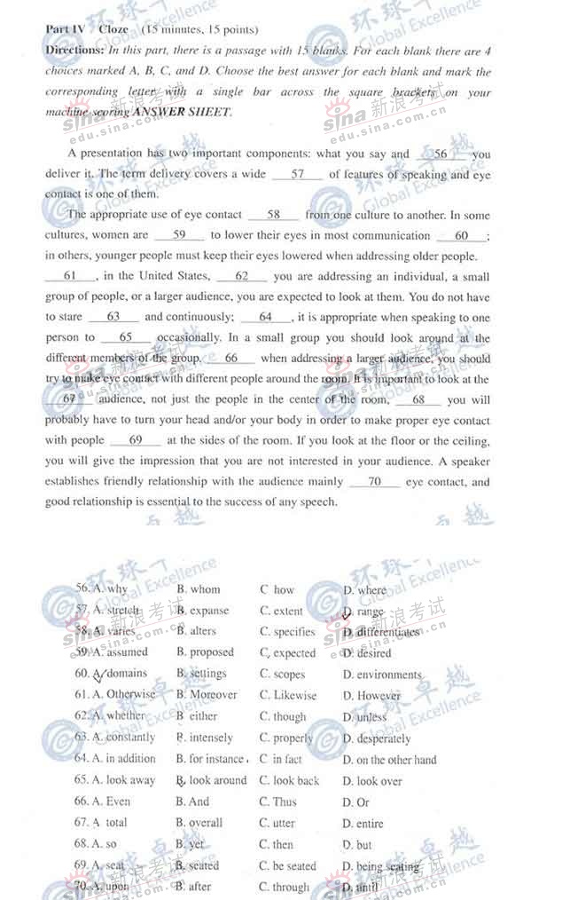 2008年同等学力申硕考试英语真题及参考答案(2)