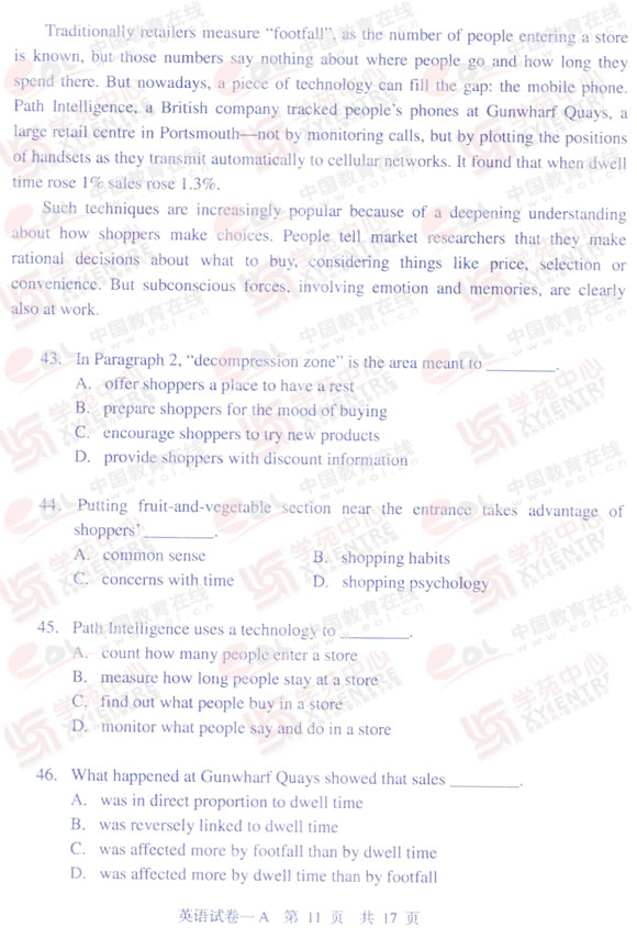 2009年同等学力申硕英语真题(A卷)及答案(11)