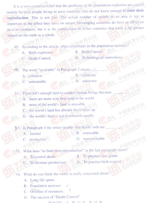 2009年同等学力申硕英语真题(A卷)及答案(13)