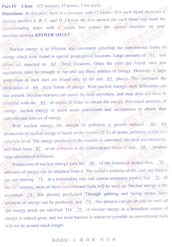 2009年同等学力申硕英语真题(A卷)及答案(16)