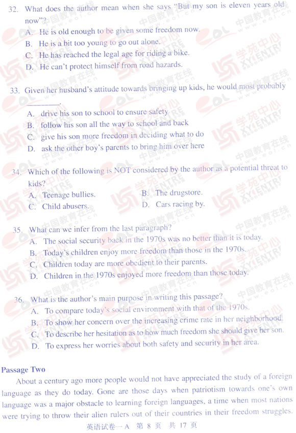 2009年同等学力申硕英语真题(A卷)及答案(8)