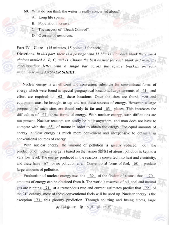 2009年同等学力申硕英语真题(B卷)及答案(16)