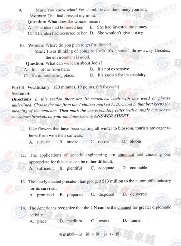 2009年同等学力申硕英语真题(B卷)及答案(4)