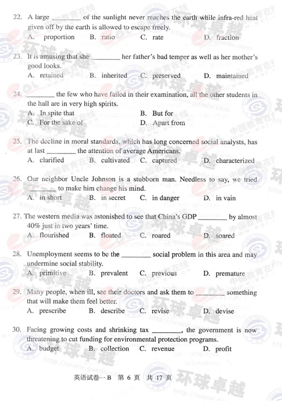 2009年同等学力申硕英语真题(B卷)及答案(6)