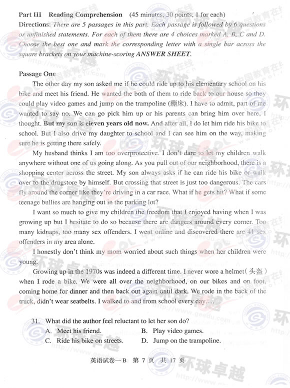 2009年同等学力申硕英语真题(B卷)及答案(7)