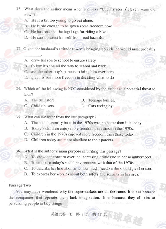 2009年同等学力申硕英语真题(B卷)及答案(8)