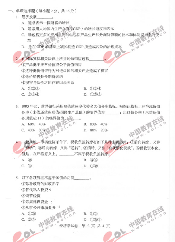 2009年同等学力申硕经济综合真题及答案(2)