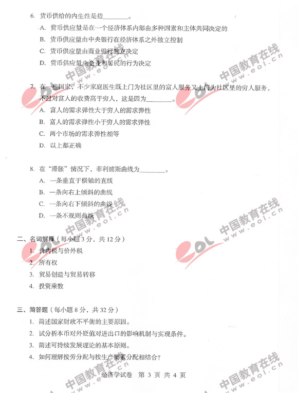 2009年同等学力申硕经济综合真题及答案(3)
