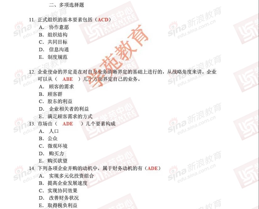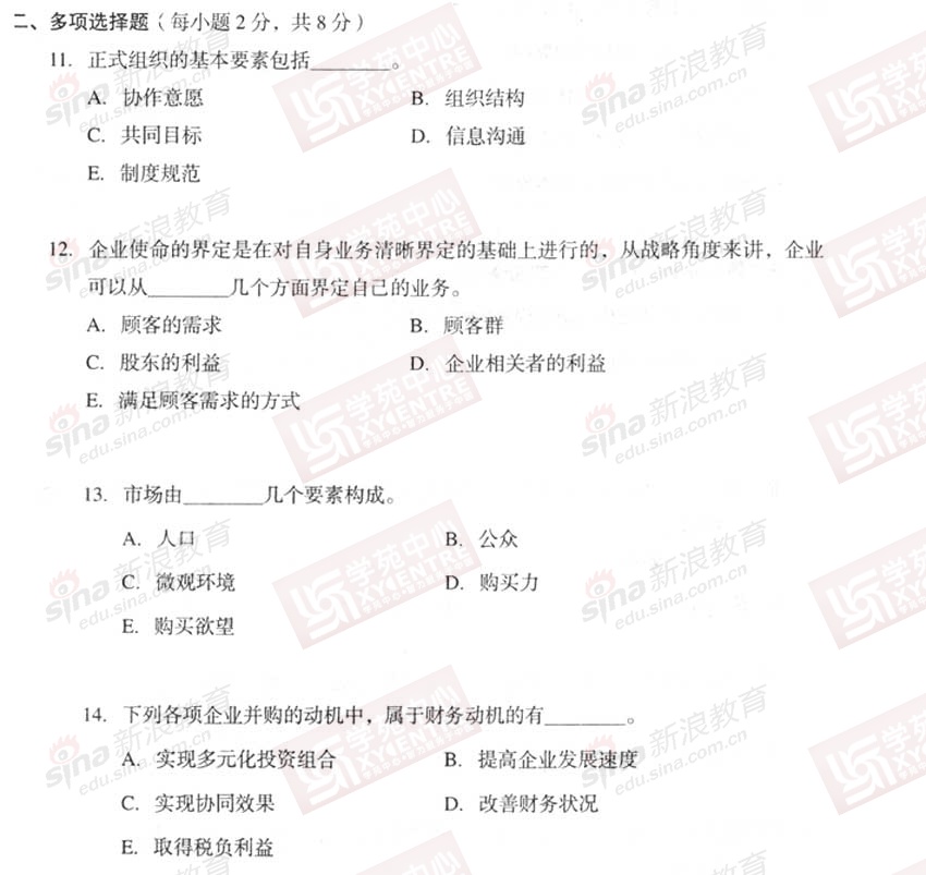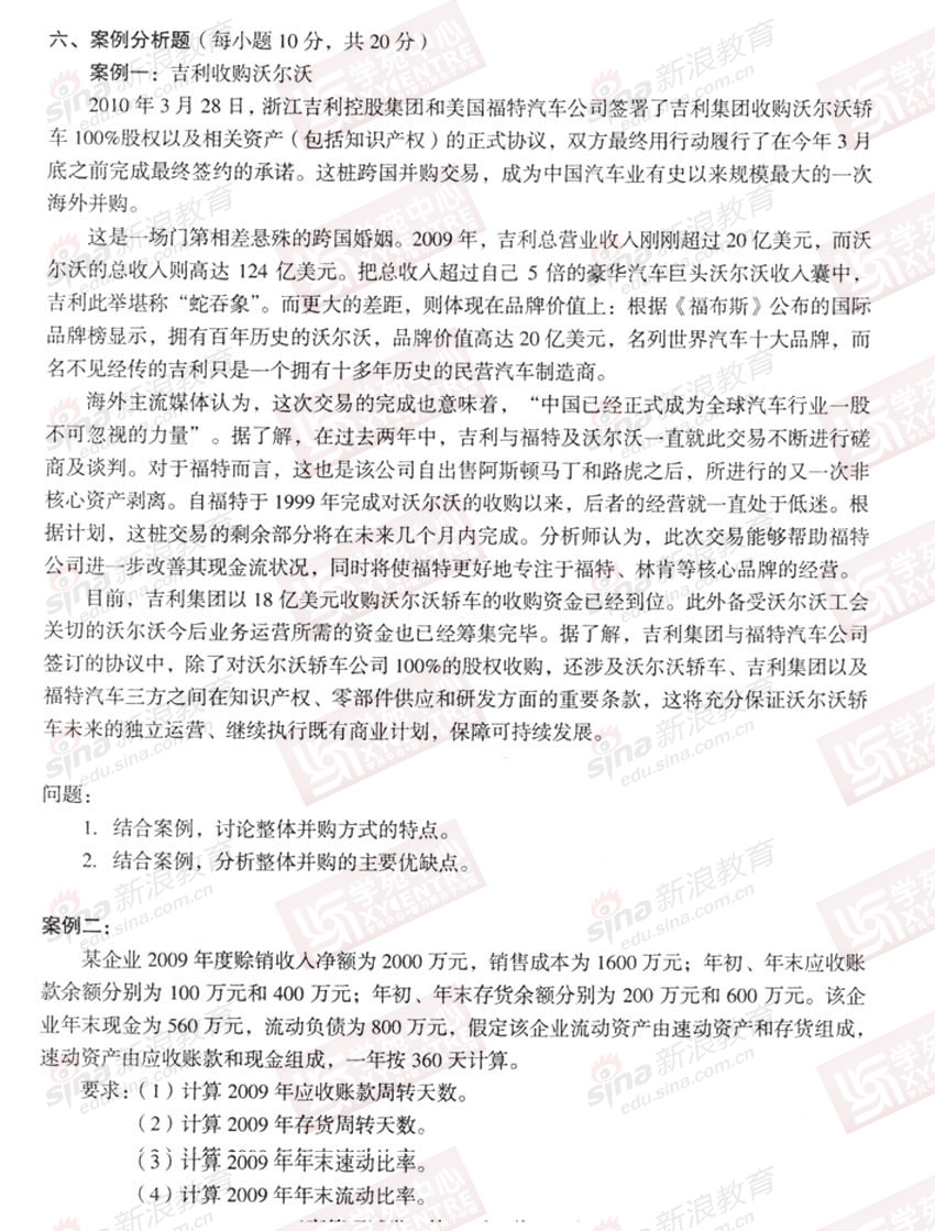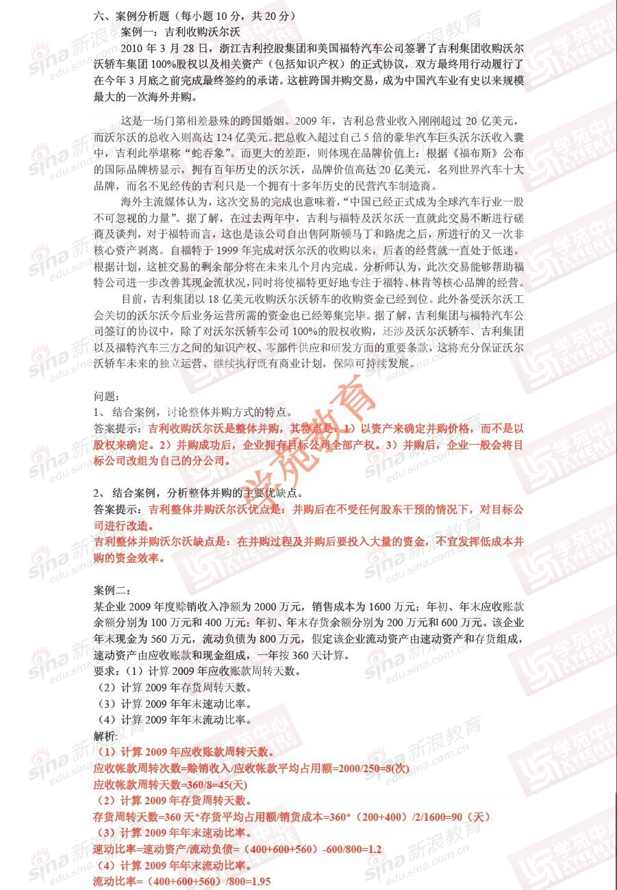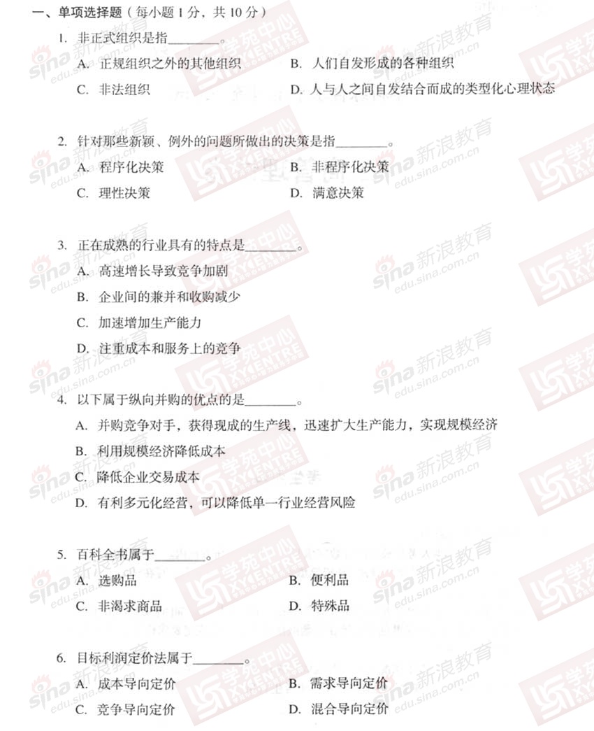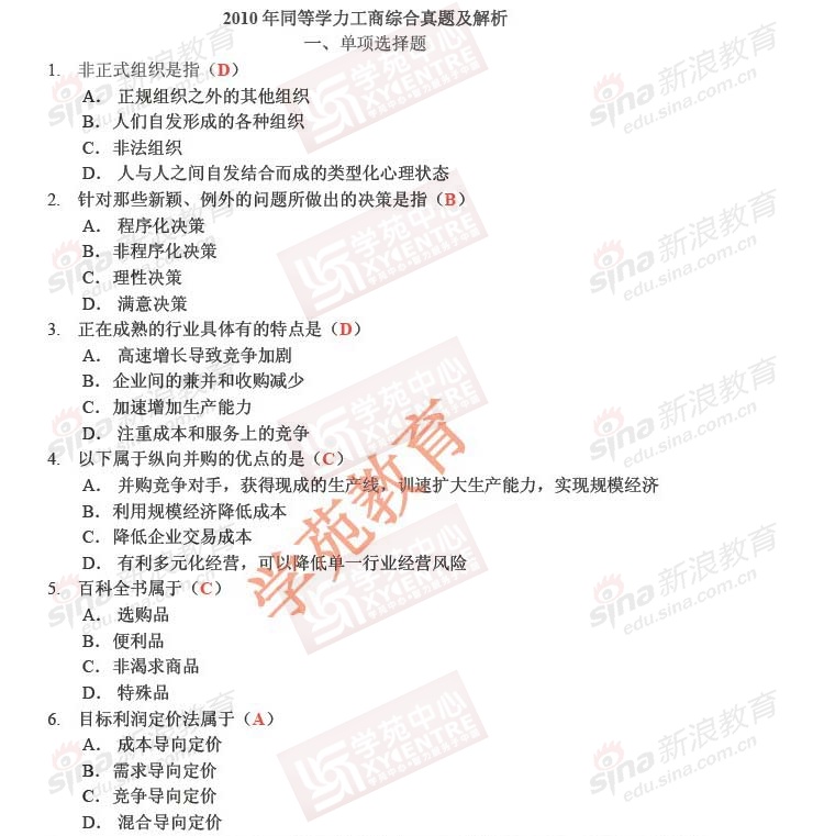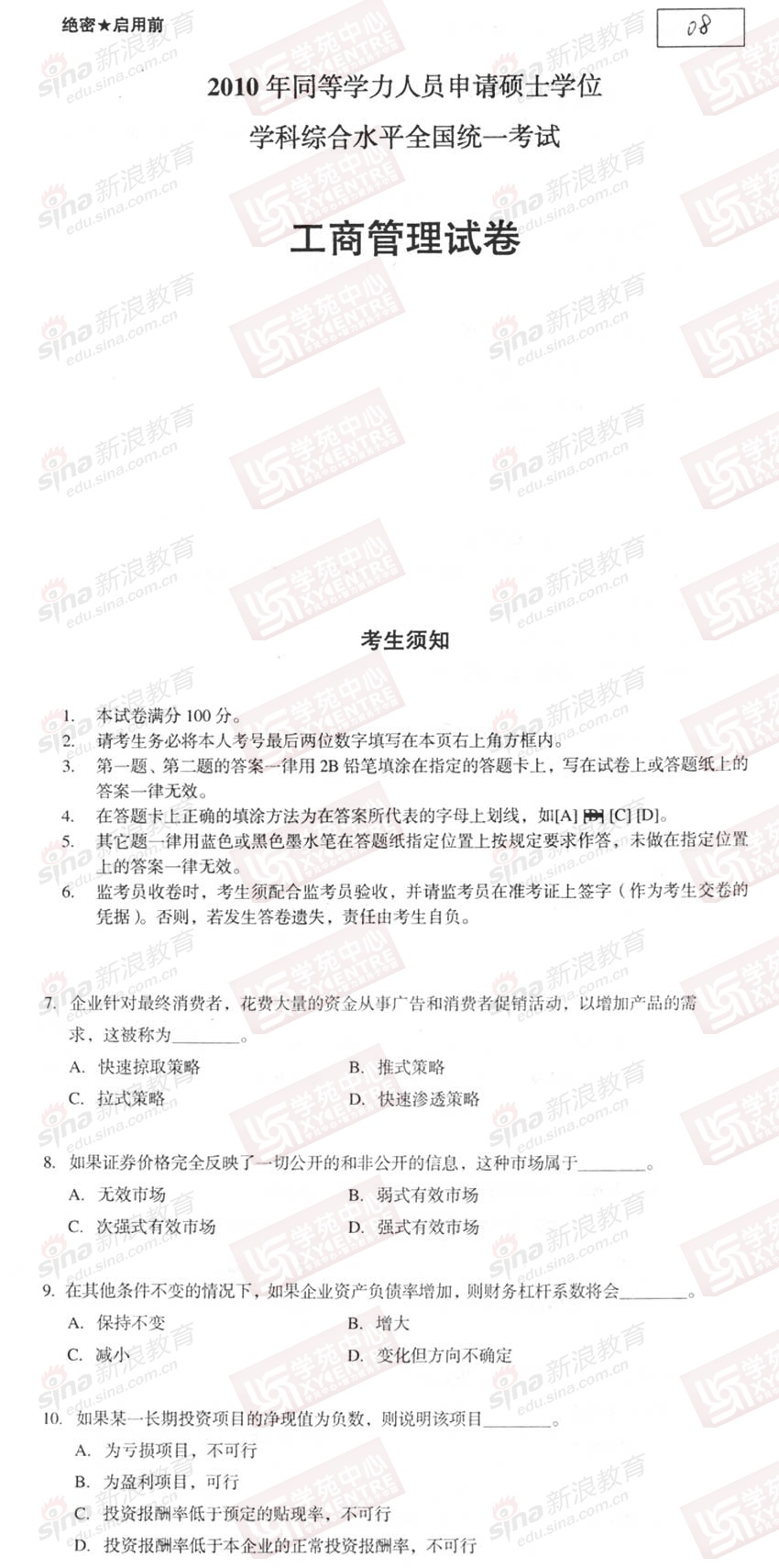 2010年同等学力人员申硕学位全国统一考试工商综合真题及参考答案