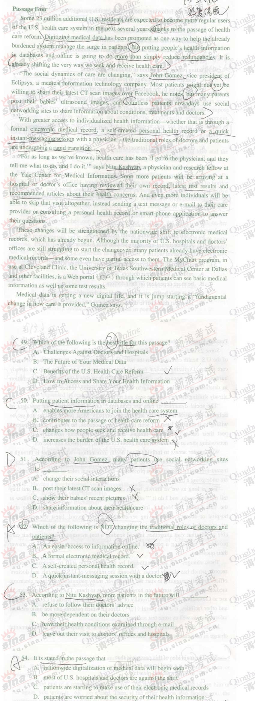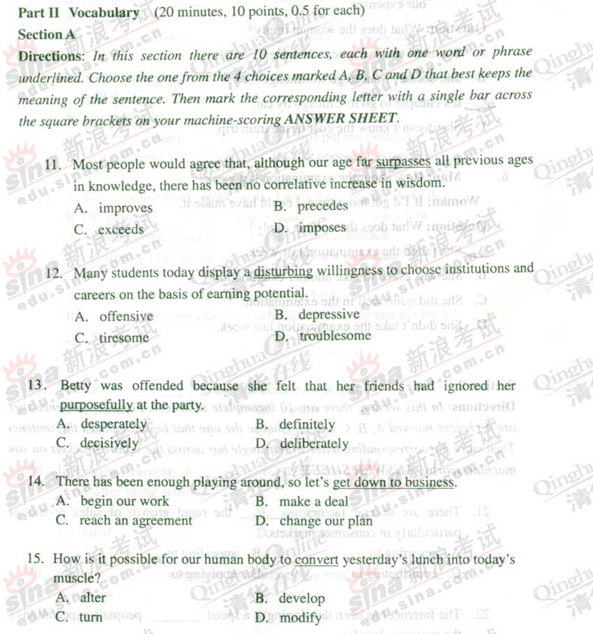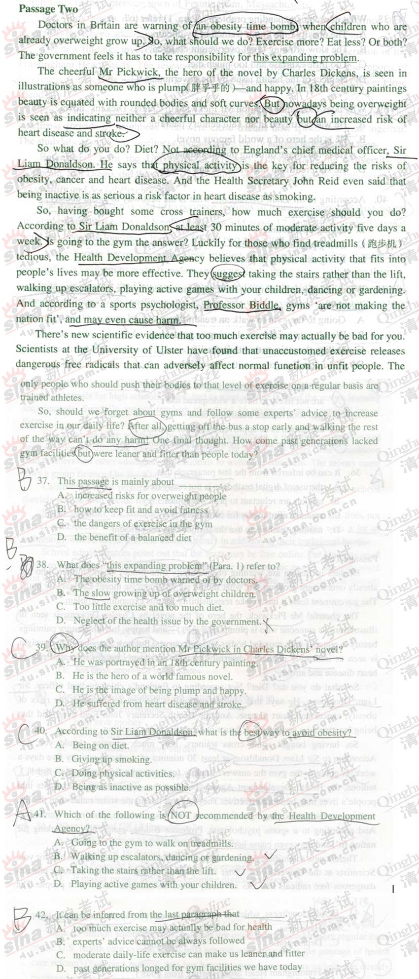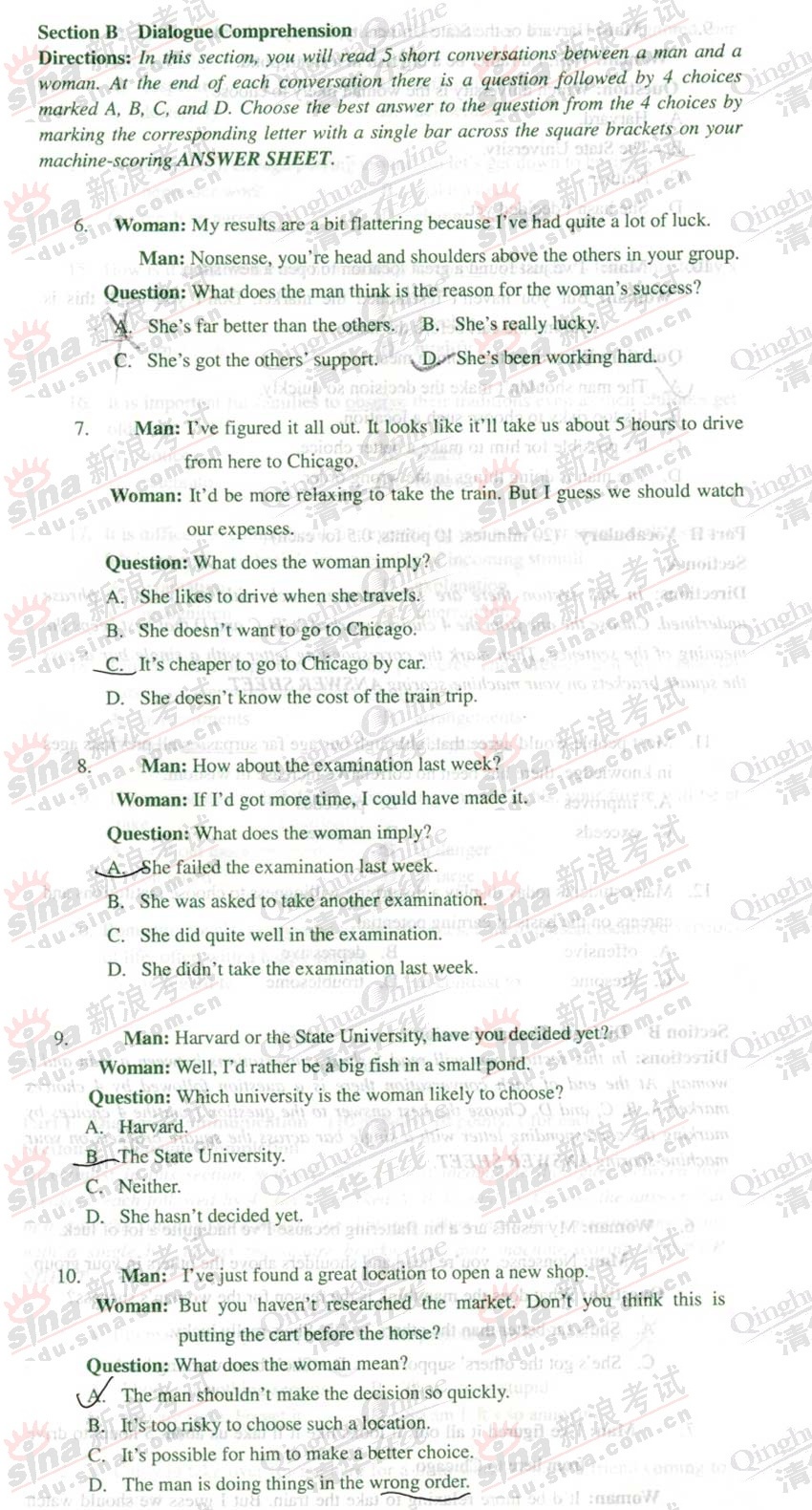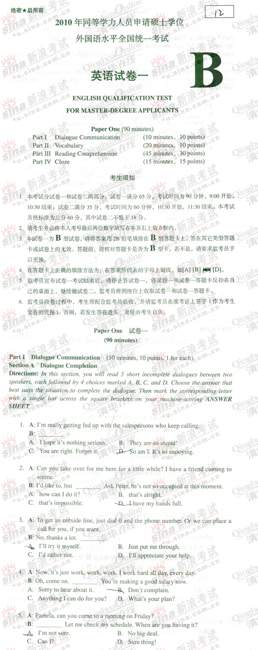 2010年同等学力人员申硕学位全国统一考试英语试卷B卷及参考答案