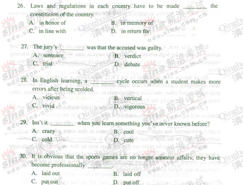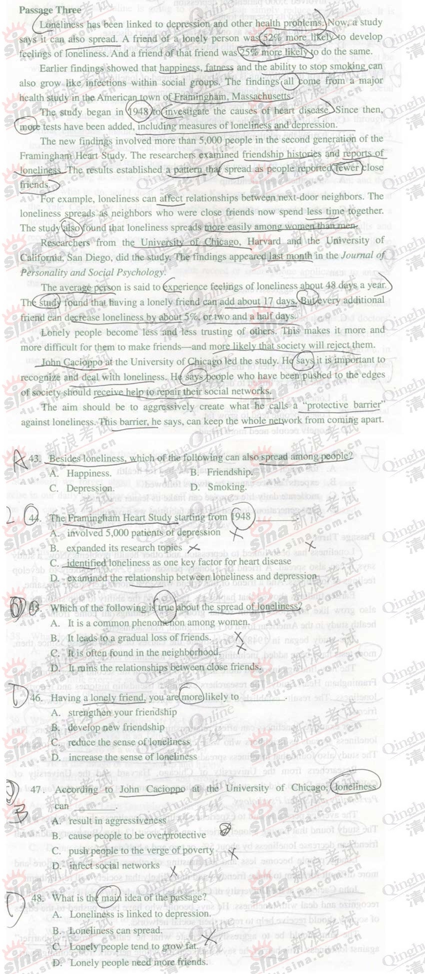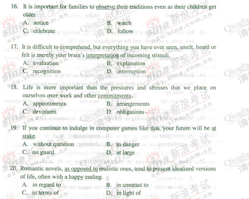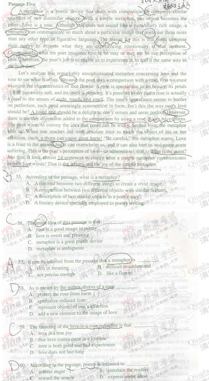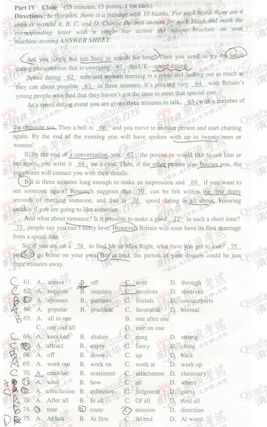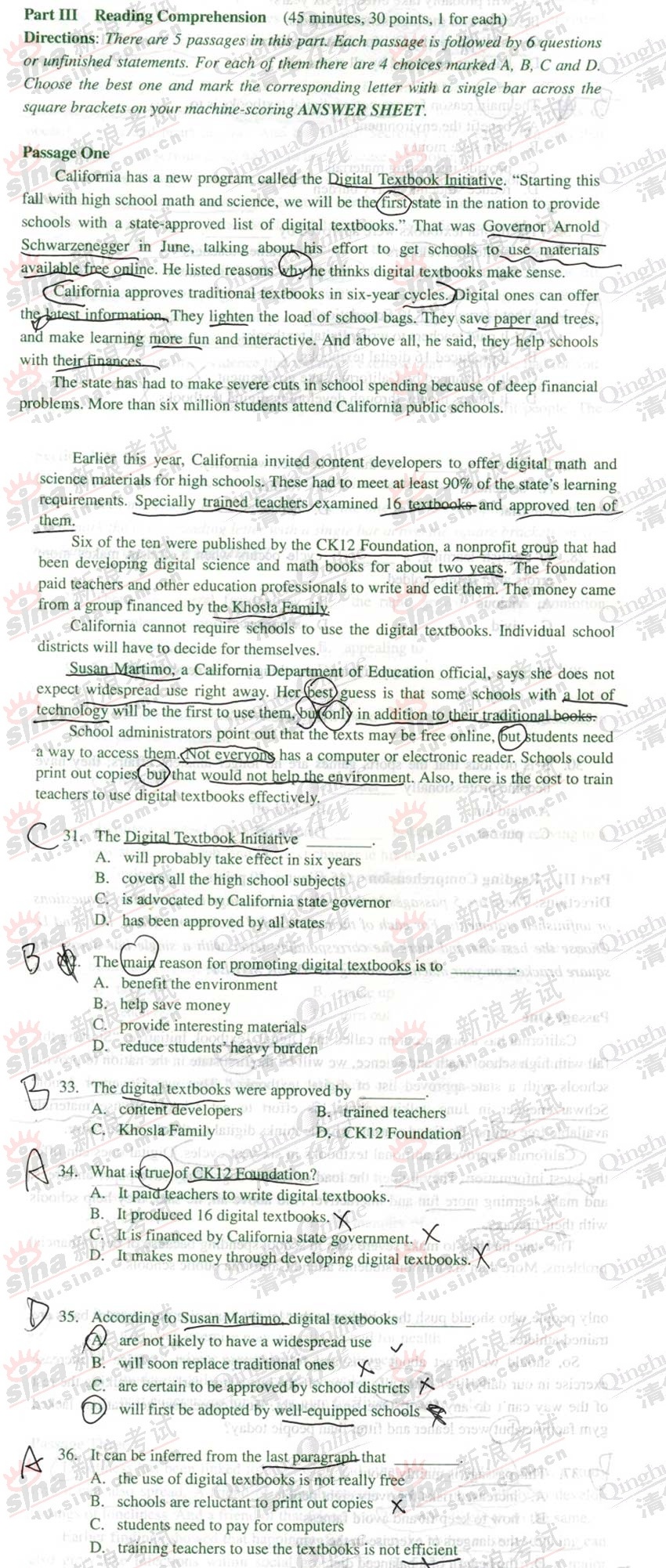 2010年同等学力人员申硕学位全国统一考试英语试卷B卷及参考答案
