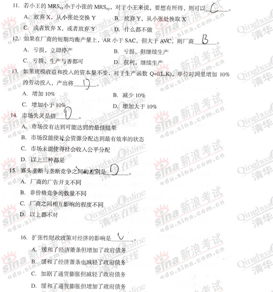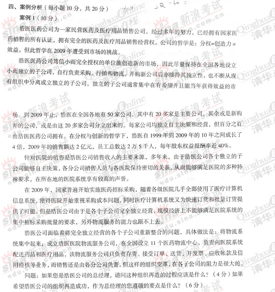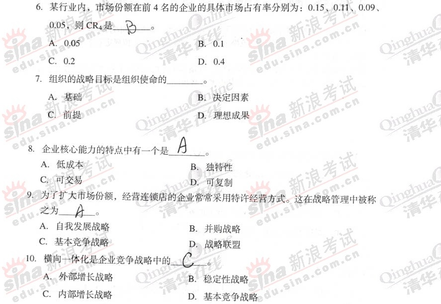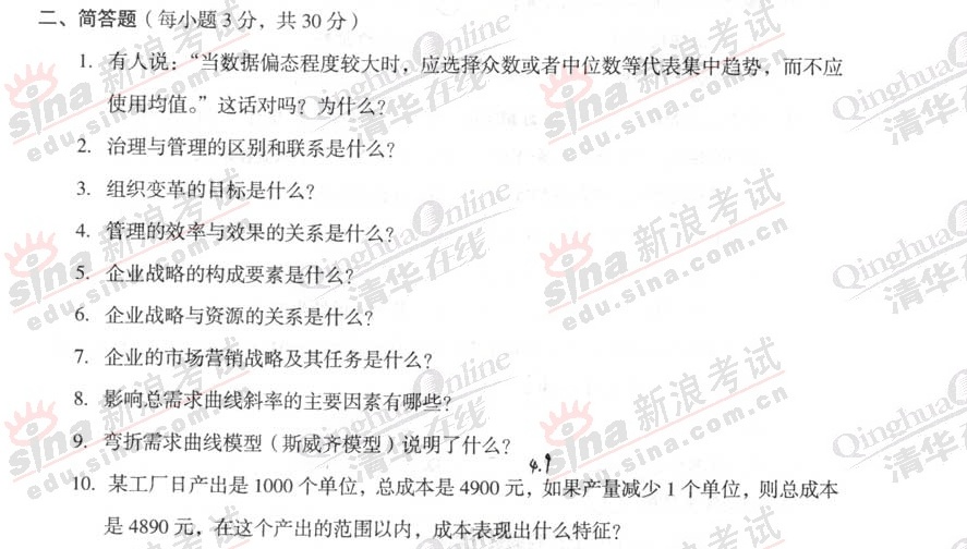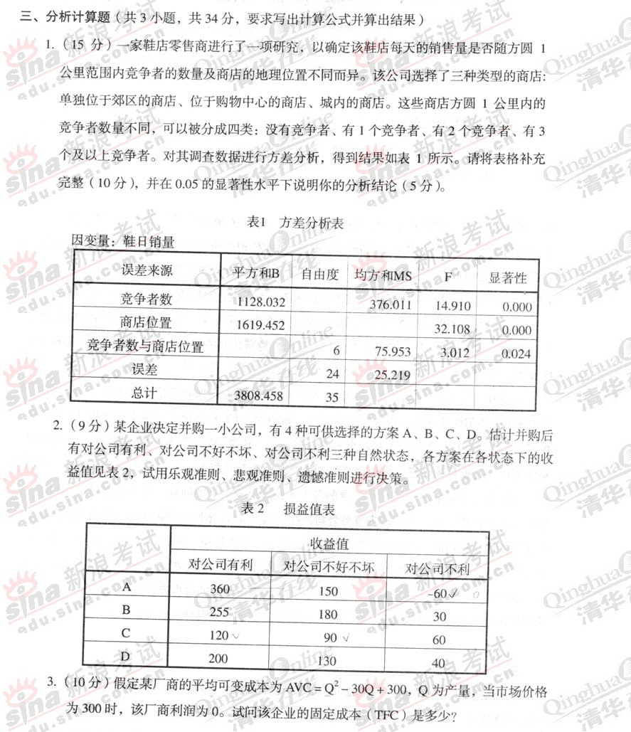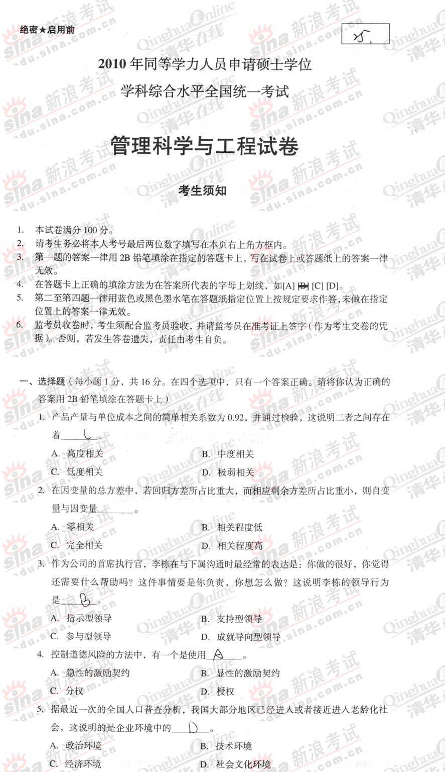 2010年同等学力人员申硕学位全国统一考试管理科学与工程真题及参考答案