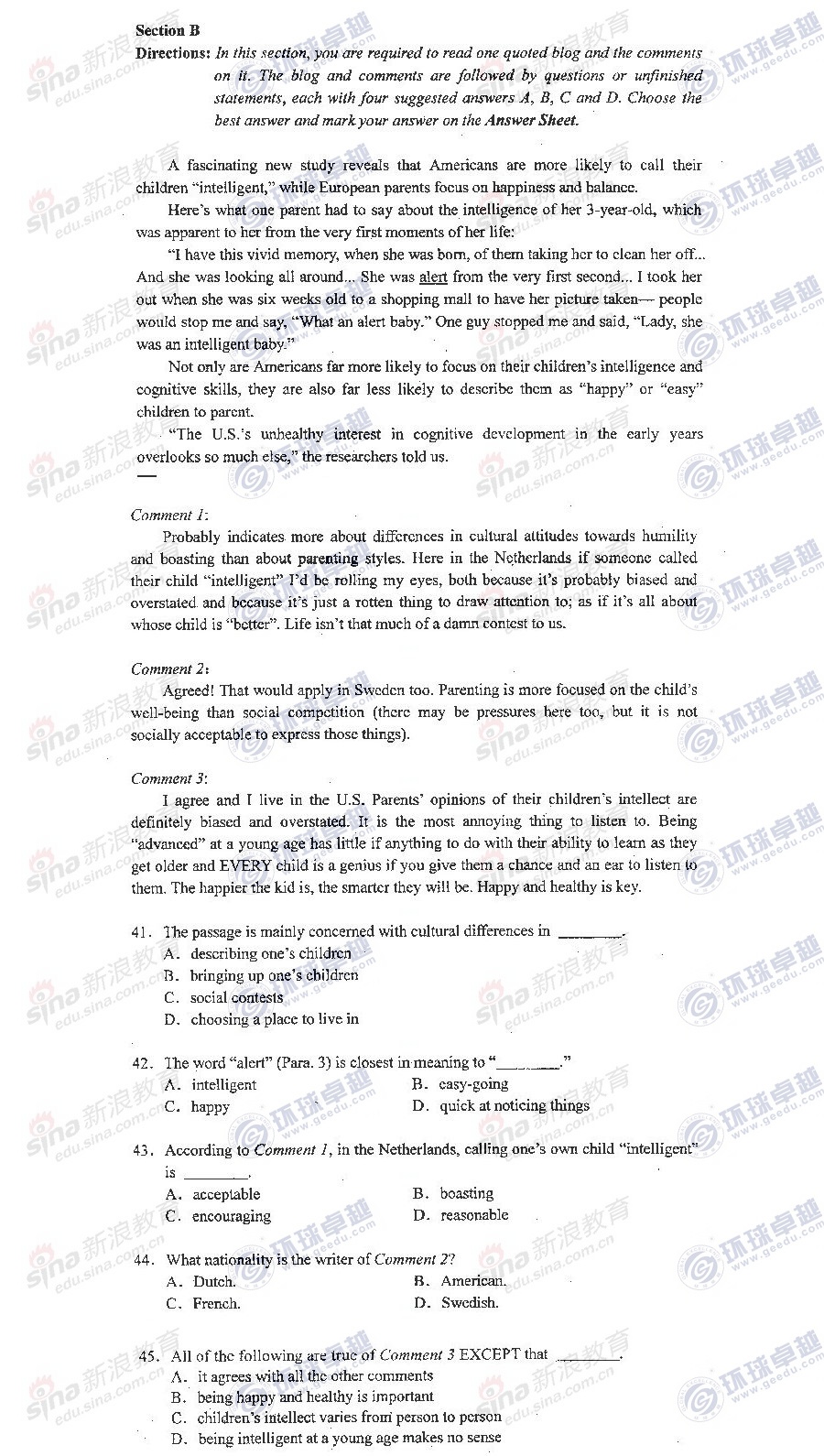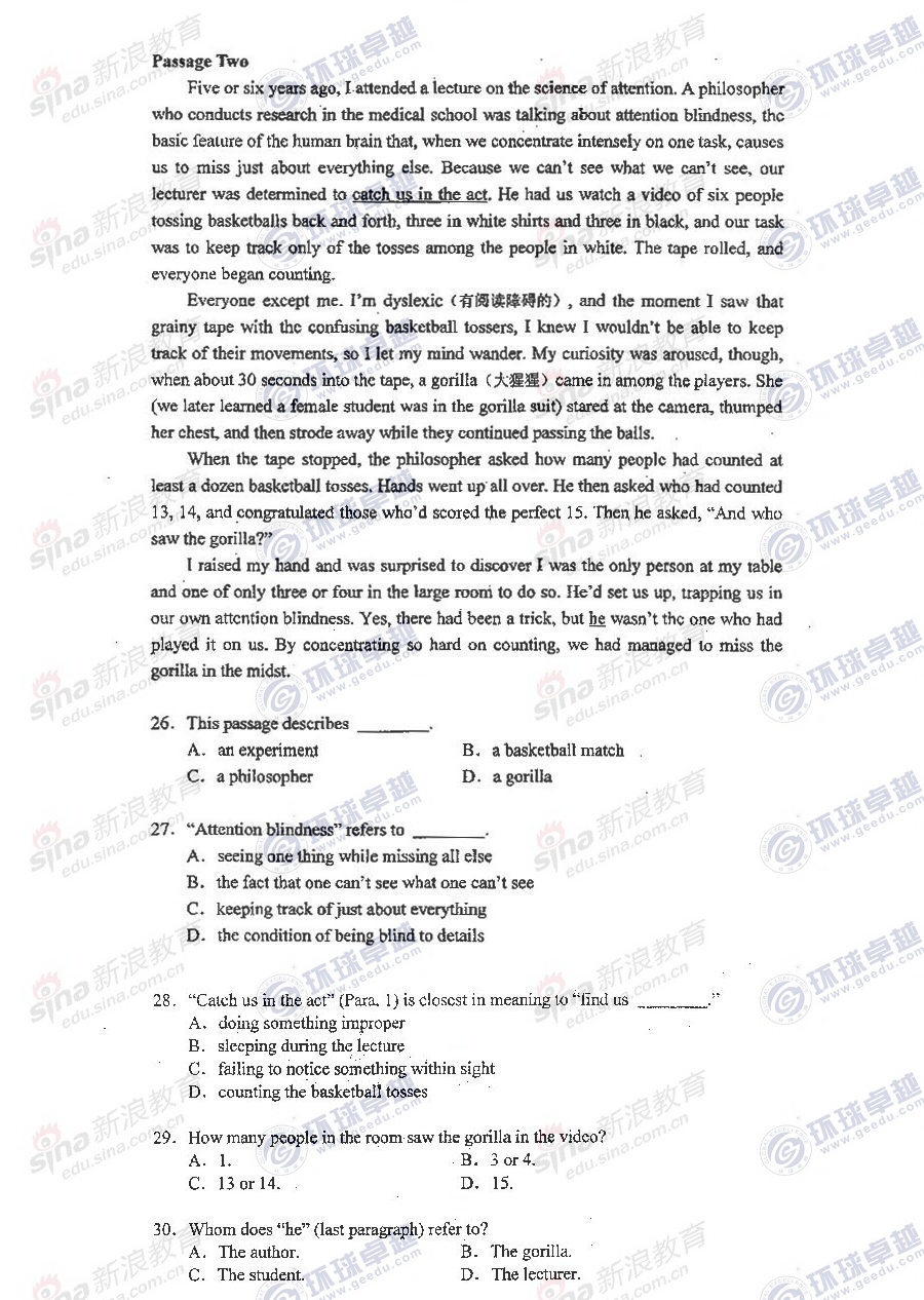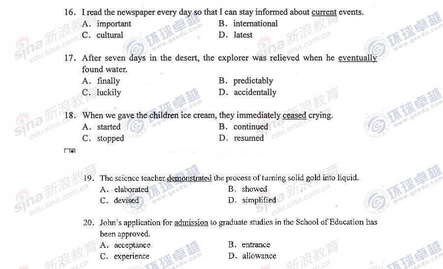 考研初试经验 新浪教育 免费考研网 2014-01-202012年同等学力考试将于5月27日开考,考生们也在做着最后的冲刺。 新东方网络课堂同等学力辅导团队针对英语考试特点及历年考试分析,总结出了对于阅读理解部分,可以能帮助考生们短期提高成绩的思路、方法,希望广大考生参考并运用到冲刺复习中,同时能起到提高成绩的作用。 一、近几年考题特点: 1.阅读 ...