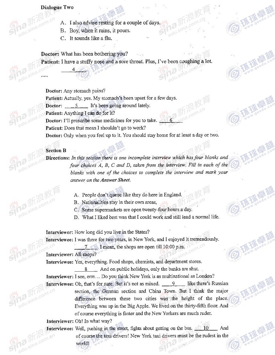 考研初试经验 新浪教育 免费考研网 2014-01-202012年5月27日的同等学力考试在即。英语科目一直是广大考生备考的重点和难点。根据多年考试辅导经验,新东方网络课堂同等学力辅导老师提醒大家,会话技能部分是最容易得分的题目,所以要保证不丢分。以下十大解题思路希望能对大家的得分有所帮助。 技巧小贴士:不礼貌的答案不入选、直接拒绝的不如选、选择委婉、 ...