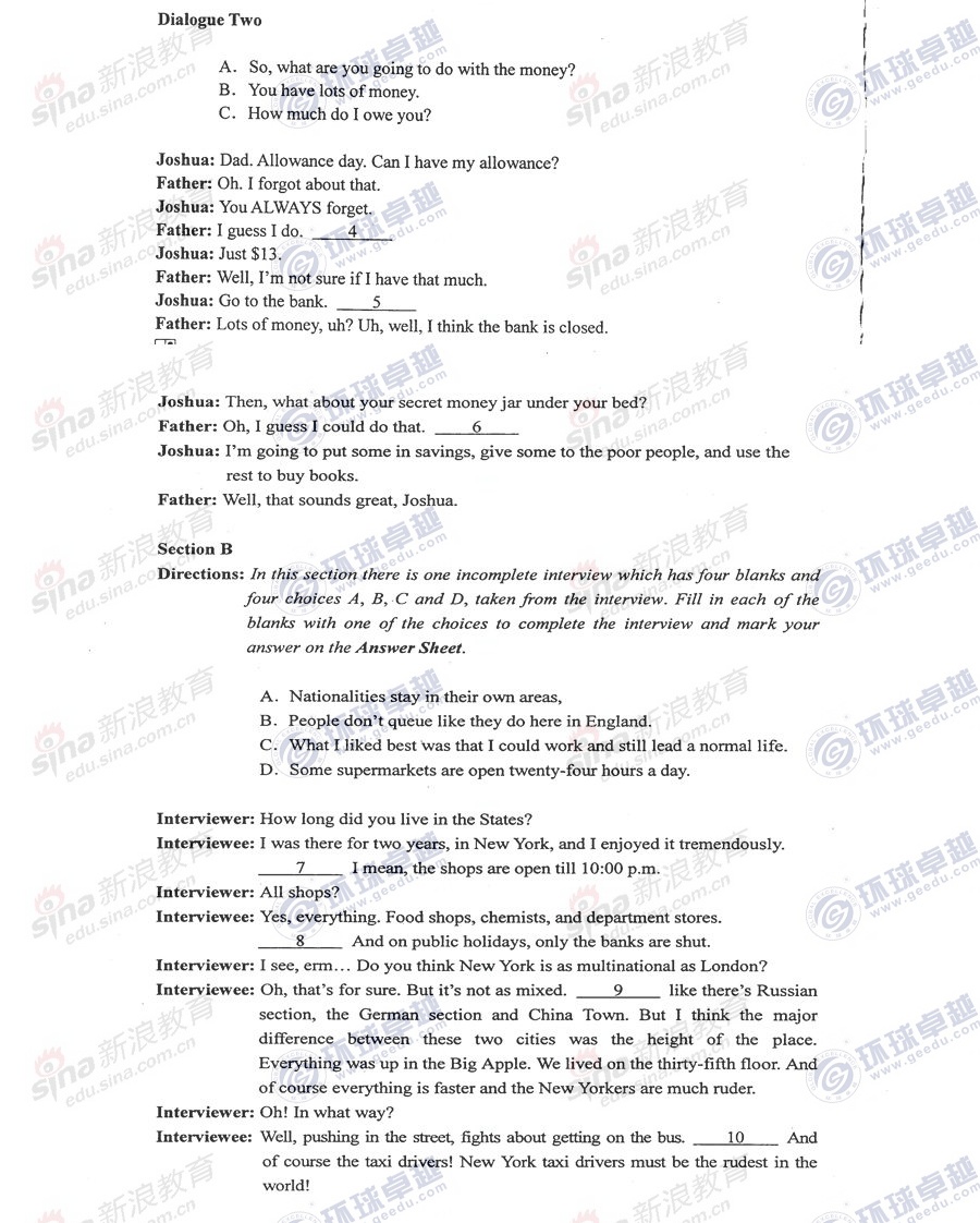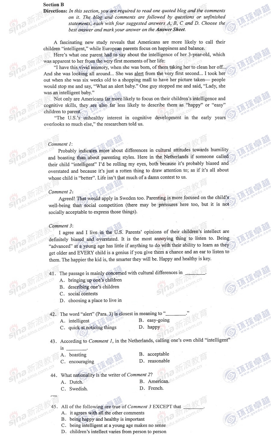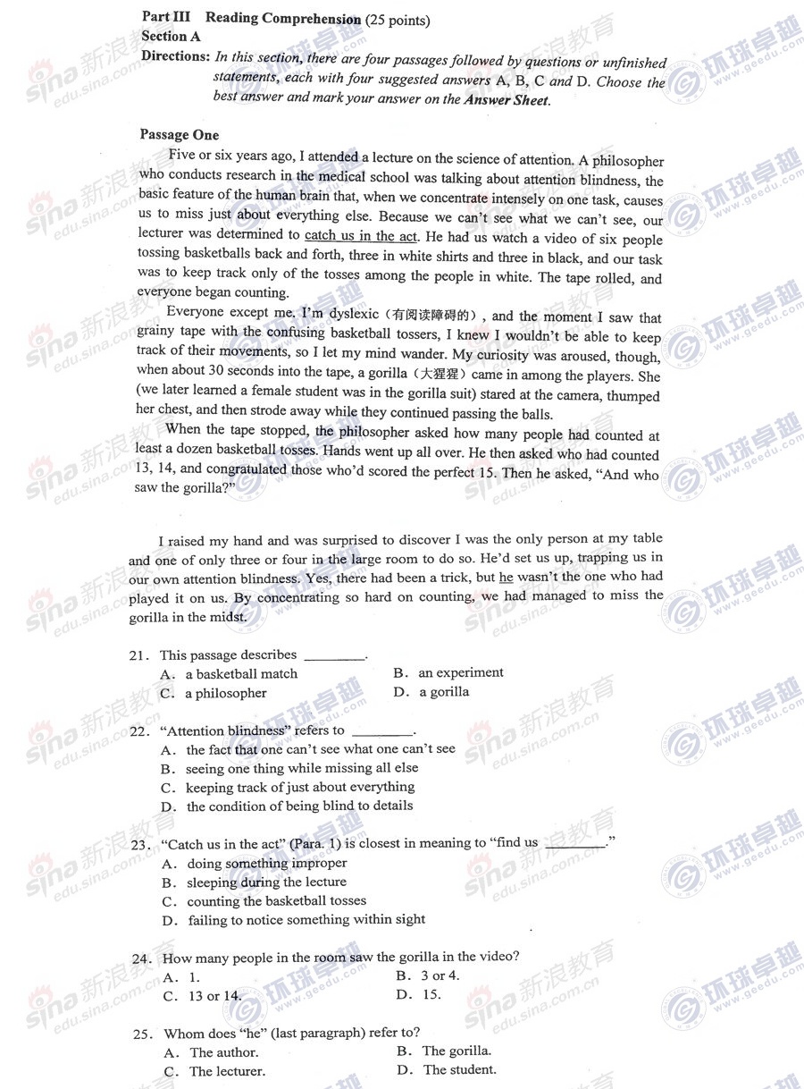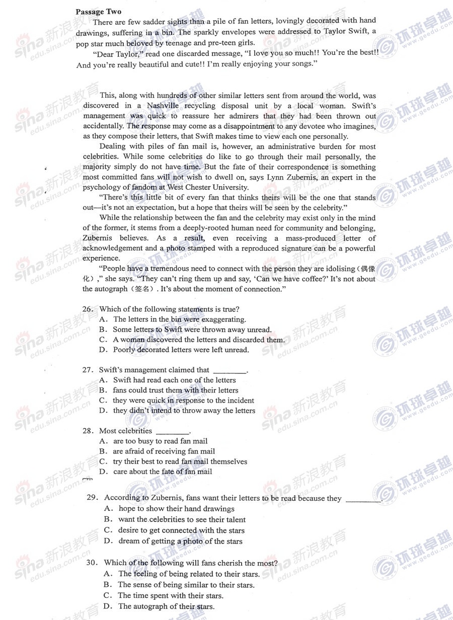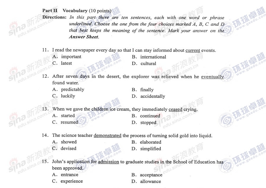 考研初试经验 新浪教育 免费考研网 2014-01-202012年同等学力考试将于5月27日开考,考生们也在做着最后的冲刺。 新东方网络课堂同等学力辅导团队针对英语考试特点及历年考试分析,总结出了对于阅读理解部分,可以能帮助考生们短期提高成绩的思路、方法,希望广大考生参考并运用到冲刺复习中,同时能起到提高成绩的作用。 一、近几年考题特点: 1.阅读 ...