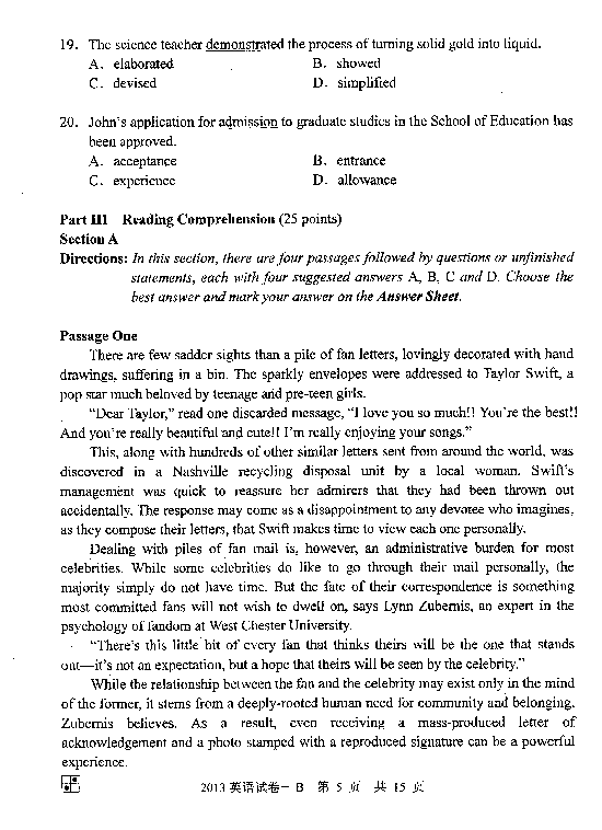 2013年同等学力申硕英语真题(B卷)(3)