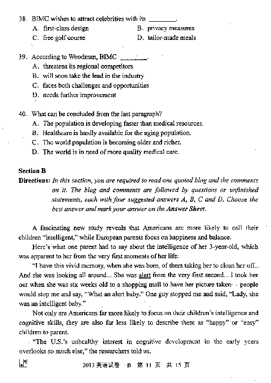 2013年同等学力申硕英语真题(B卷)(9)