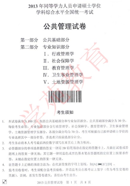 2014年同等学力申硕考试在即,中国教育在线整理了2013年同等学力申硕公共管理真题,供广大考生复习参考!