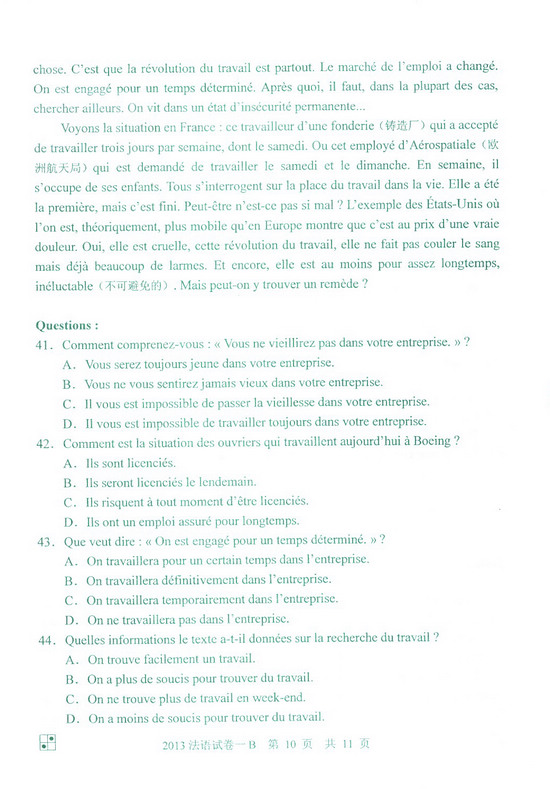 2013年同等学力申硕法语一卷(B卷)真题(6)