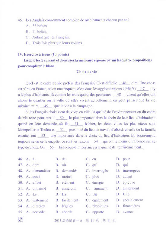 2013年同等学力申硕法语一卷(A卷)真题(11)
