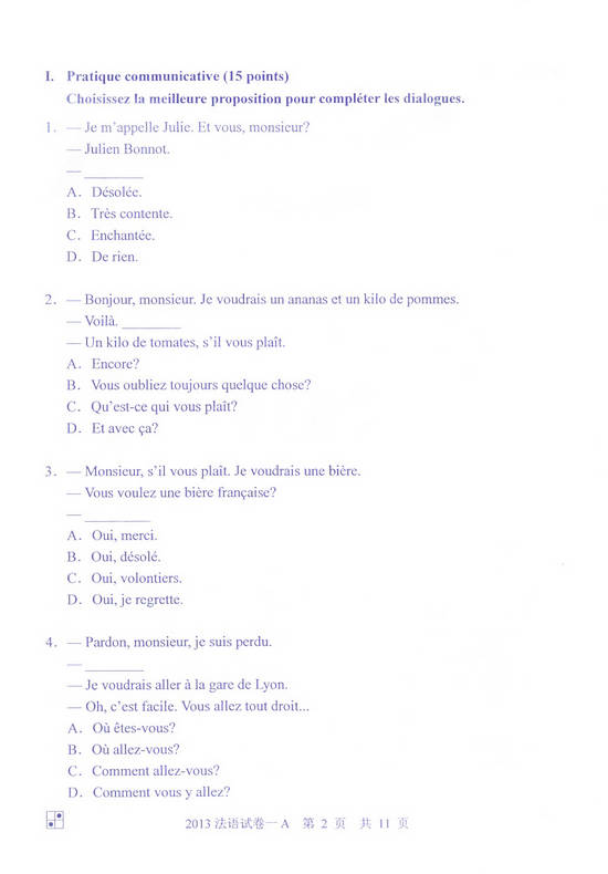 2013年同等学力申硕法语一卷(A卷)真题(2)