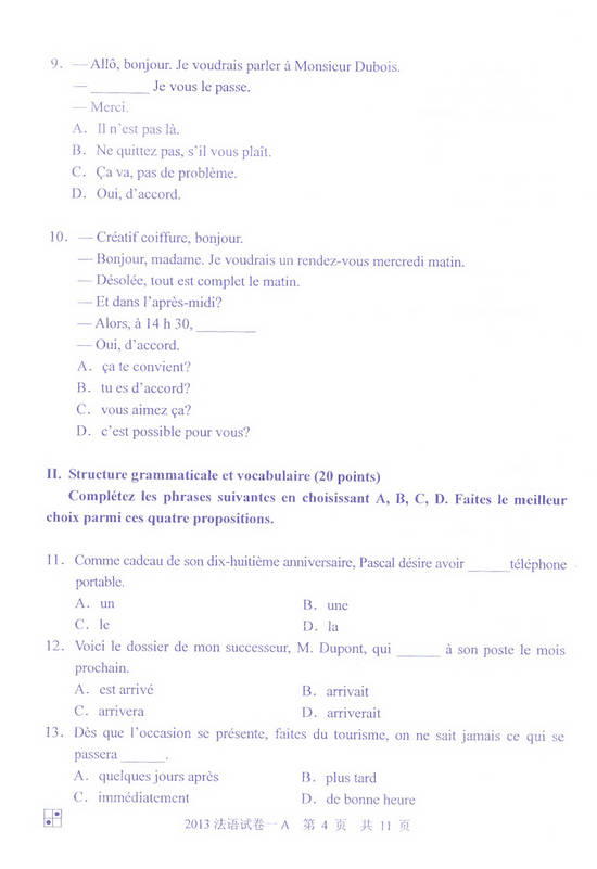 2013年同等学力申硕法语一卷(A卷)真题(4)