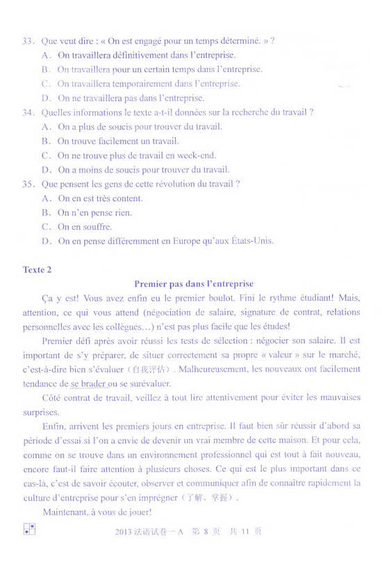 2013年同等学力申硕法语一卷(A卷)真题(8)