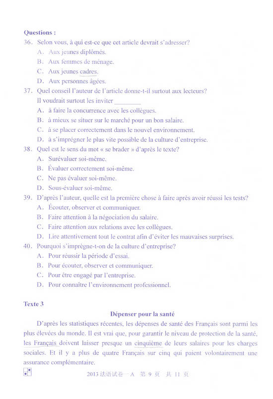 2013年同等学力申硕法语一卷(A卷)真题(9)