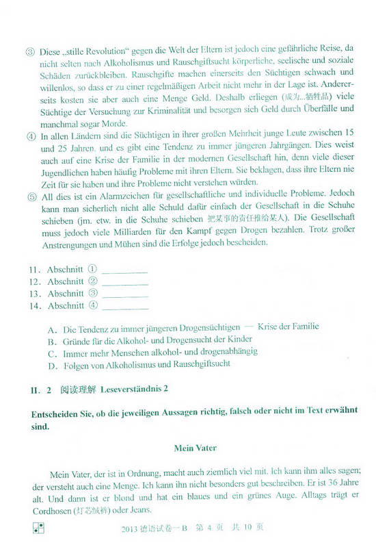 2013年同等学力申硕德语一卷(B卷)真题及答案(4)