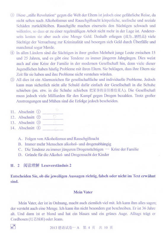 2013年同等学力申硕德语一卷(A卷)真题及答案(5)