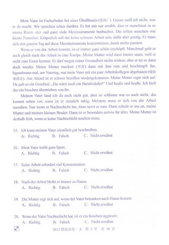 2013年同等学力申硕德语一卷(A卷)真题及答案(6)
