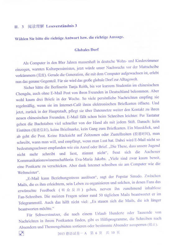 2013年同等学力申硕德语一卷(A卷)真题及答案(7)