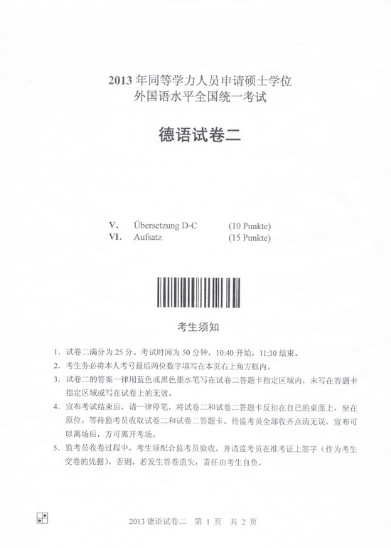 2014年同等学力申硕考试在即,中国教育在线整理了2013年同等学力申硕德语真题,供广大考生复习参考!
