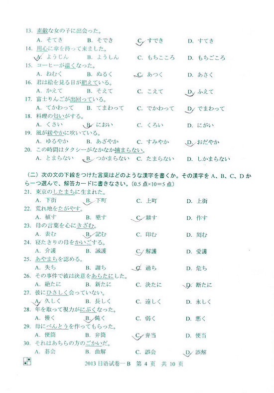 2013年同等学力申硕日语一卷(B卷)真题(4)