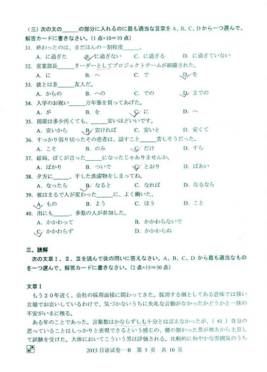 2013年同等学力申硕日语一卷(B卷)真题(5)