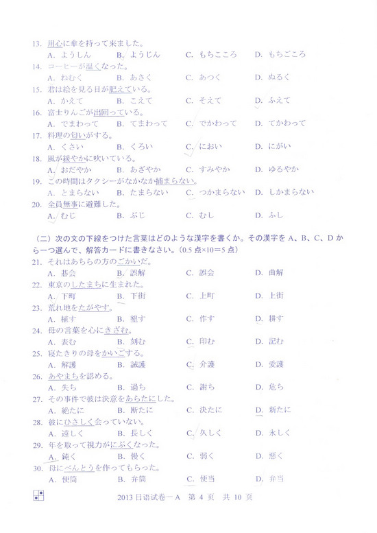 2013年同等学力申硕日语一卷(A卷)真题(4)