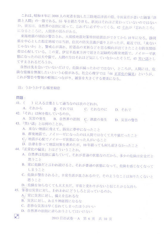 2013年同等学力申硕日语一卷(A卷)真题(6)