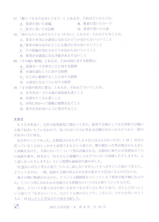 2013年同等学力申硕日语一卷(A卷)真题(8)