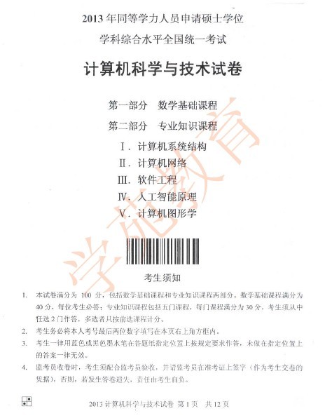 2014年同等学力申硕考试在即,中国教育在线整理了2013年同等学力申硕计算机科学真题,供广大考生复习参考!