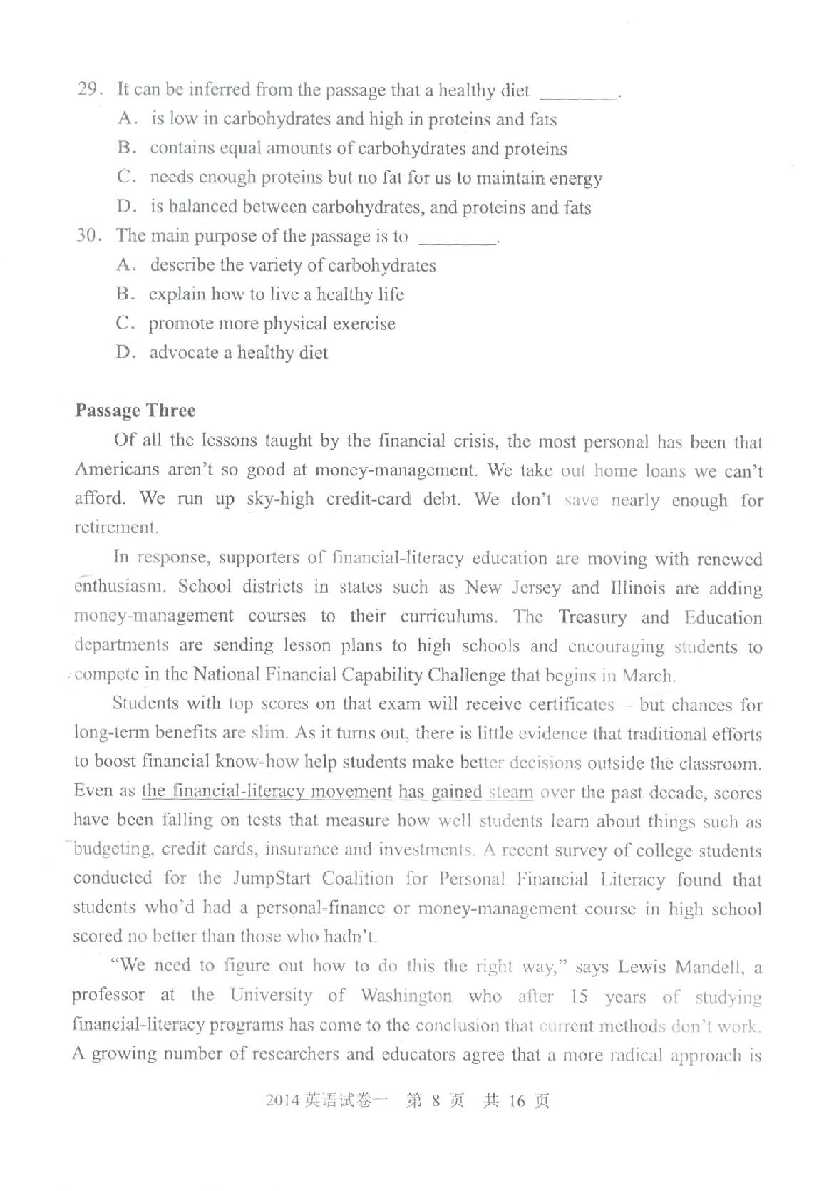 2014年同等学力英语真题试卷一卷(扫描版)(8)