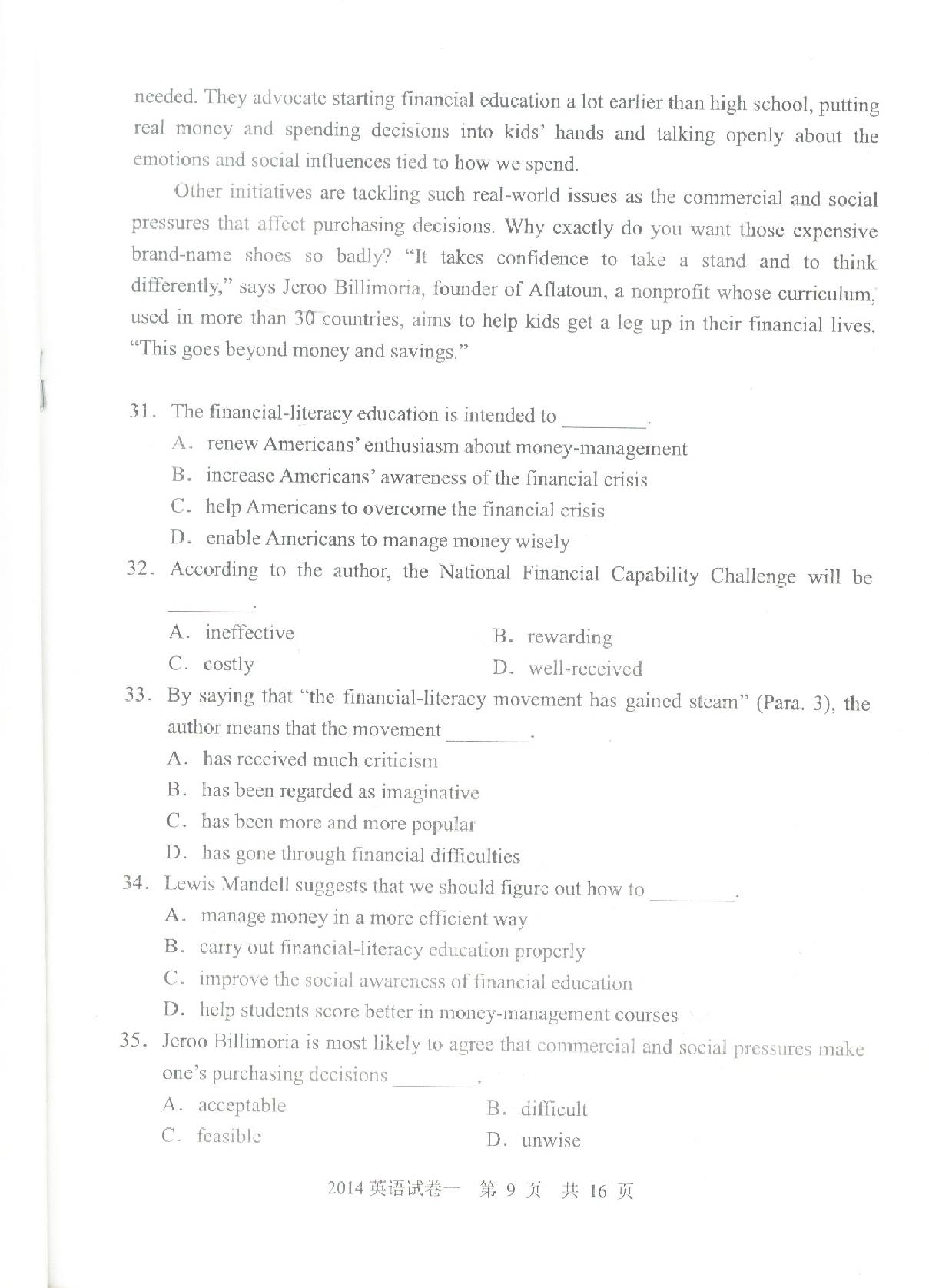 2014年同等学力英语真题试卷一卷(扫描版)(9)