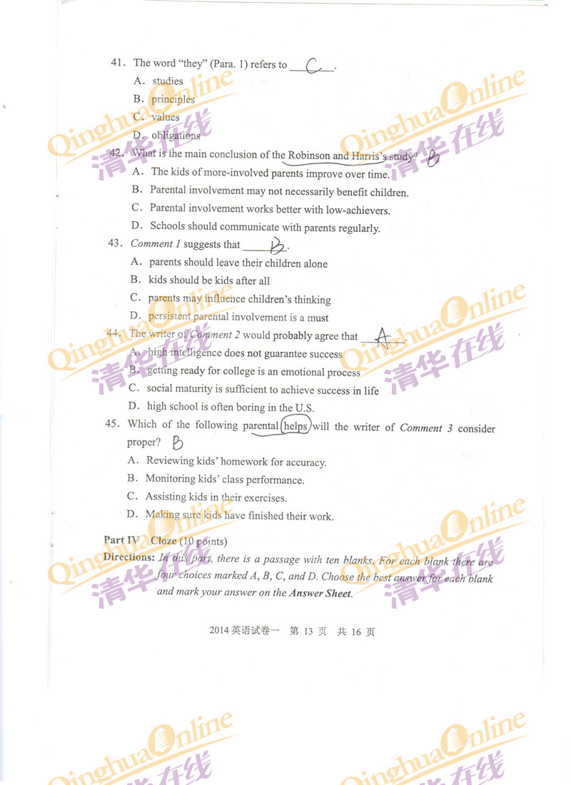 2014同等学力申硕英语答案(网友版)(13)